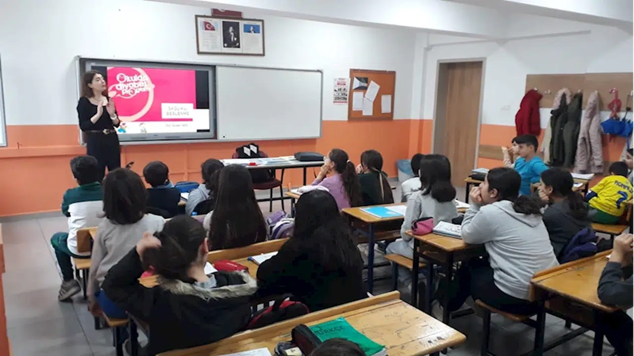 Diyetisyen Gülşah Sağ, Türkiye Sağlıklı Beslenme ve Hareketli Hayat Programı kapsamında Atatürk Ortaokulu Konferans Salonu'nda 5. sınıf öğrencileriyle bir araya geldi.