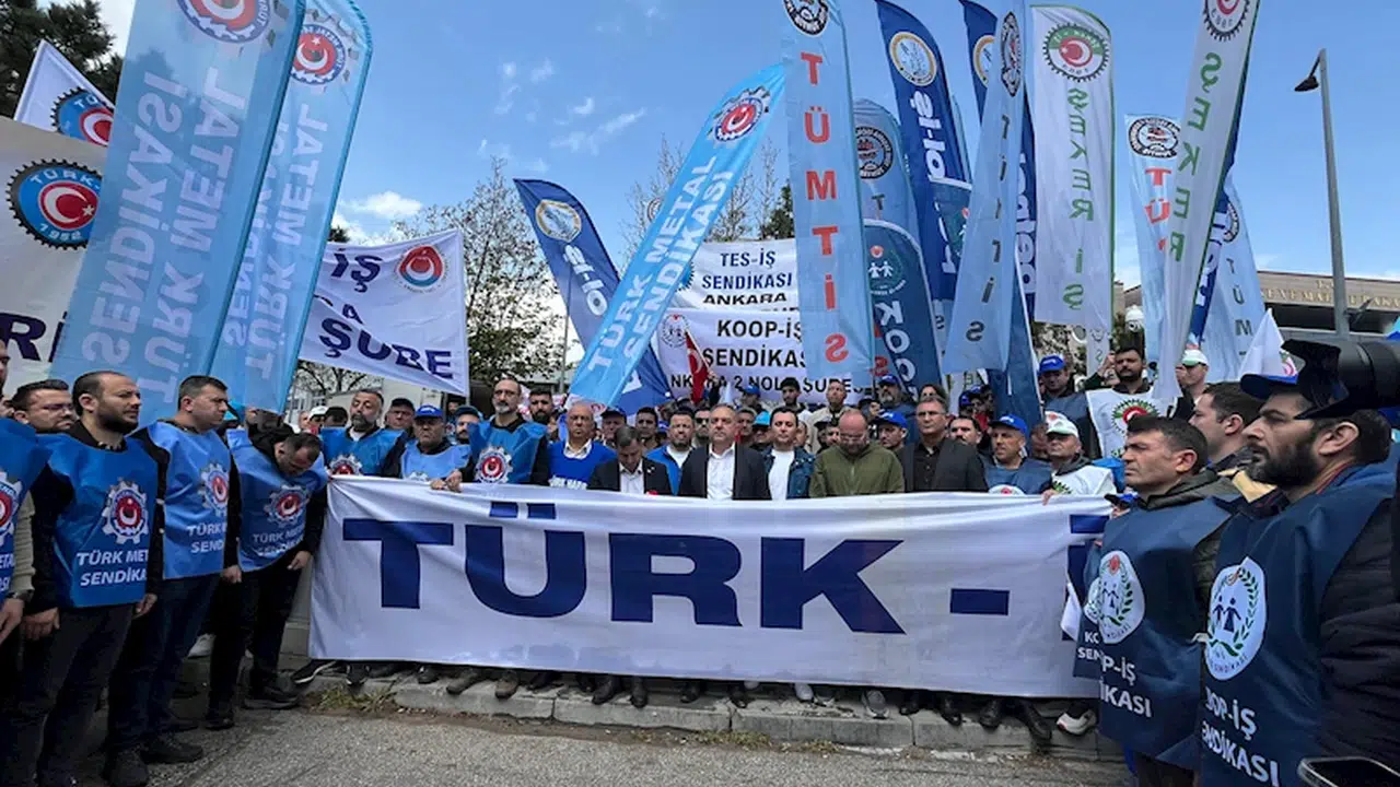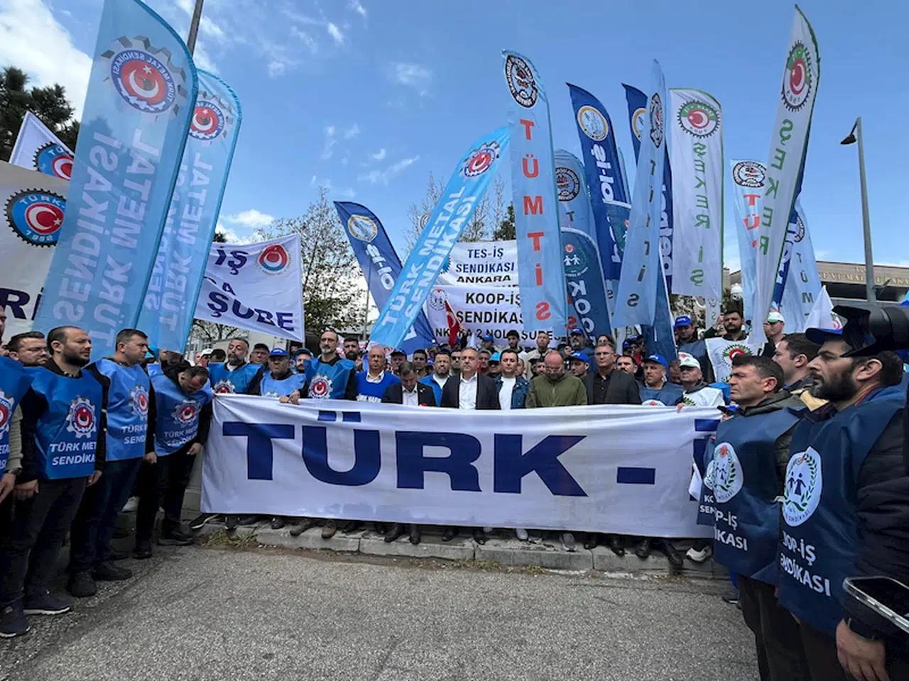 Gizem CENGİL-Mikail KARAMAN/ANKARA, (DHA)- TÜRKİYE İşçi Sendikaları Konfederasyonu (TÜRK-İŞ), '1 Mayıs Emek ve Dayanışma Günü’nü Hazine ve Maliye Bakanlığı önünde kutladı.