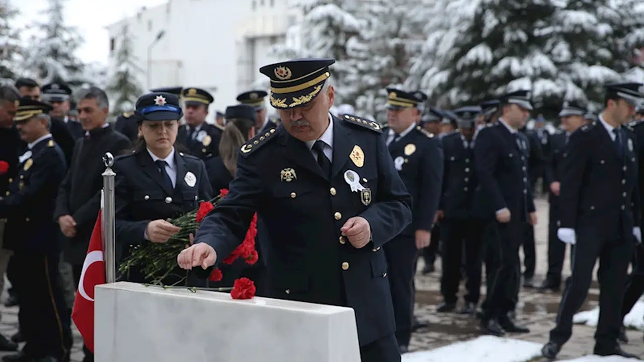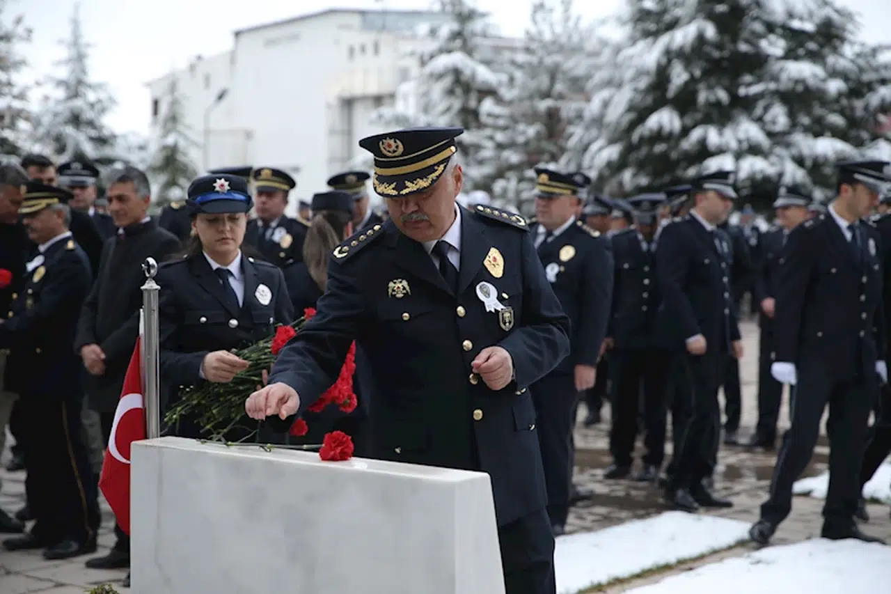 Cumhuriyet Meydanı’nda başlayan törene, İl Emniyet Müdürü Yılmaz Delen, Polis Meslek Eğitim Merkezi (POMEM) Müdürü Mehmet Kemal Arısoy, çok sayıda polis memuru, polis okulu öğrencisi ve vatandaş katıldı. Tören, İl Emniyet Müdürü Yılmaz Delen ve POMEM Müdürü Mehmet Kemal Arısoy’un Atatürk Anıtı’na çelenk sunması ile başladı. Saygı duruşu ve İstiklal Marşı’nın okunmasının ardından meydanda gerçekleştirilen resmi tören sona erdi.