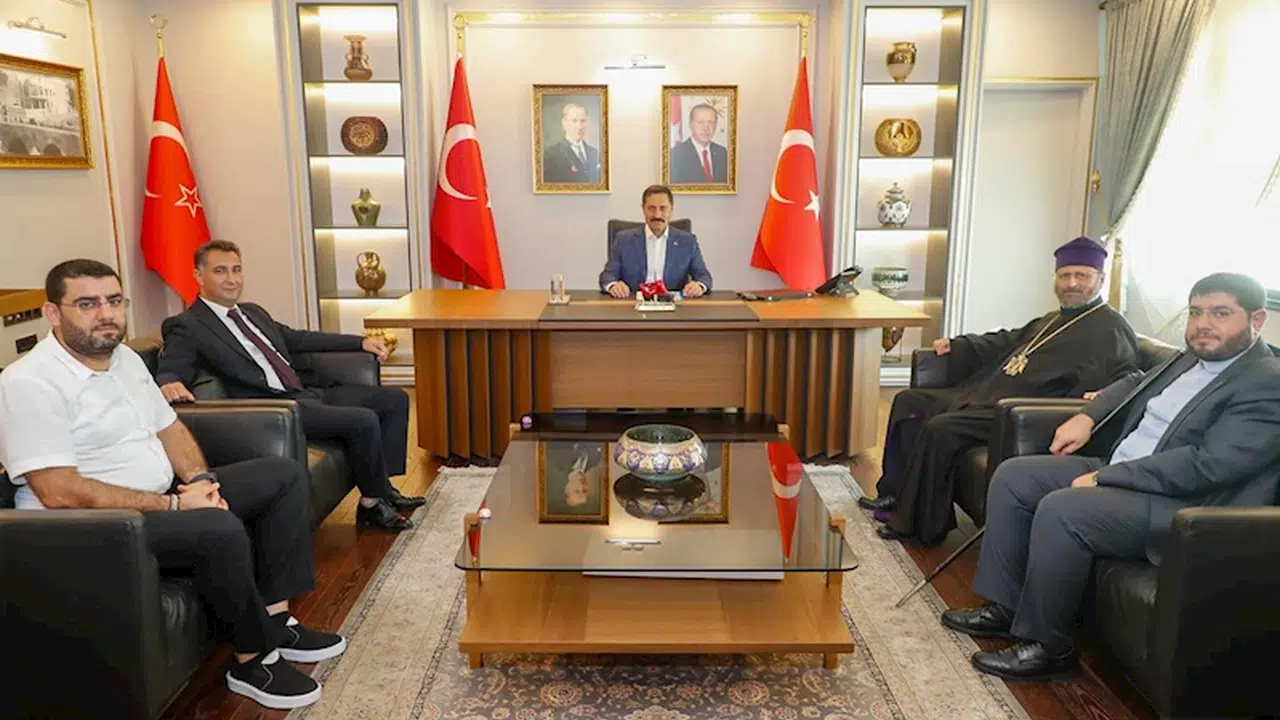 Samim SELÇUK/ HATAY, (DHA)- HATAY Valisi Mustafa Masatlı, Türkiye Ermenileri Patriği Kadasetli Sahak II. Maşalyan ve beraberindeki heyeti makamında kabul etti.