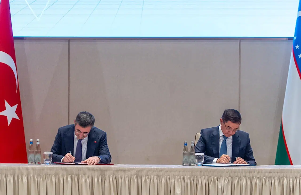 Cumhurbaşkanı Yardımcısı Cevdet Yılmaz ve Özbekistan Başbakan Yardımcısı, Ekonomi ve Maliye Bakanı Cemşit Kuçkarov ikili ve heyetler arası görüşmeler yaptı. Cumhurbaşkanı Yardımcısı Yılmaz ve Kuçkarov'un başkanlığında Türkiye-Özbekistan KEK 8'nci Dönem Toplantısı düzenlendi. Toplantı sonrasında iki ülke arasındaki anlaşmaların imza törenine geçildi. Cumhurbaşkanı Yardımcısı Yılmaz yaptığı açıklamada, "Taşkent’te düzenlediğimiz 8. Dönem Karma Ekonomik Komisyonu Toplantısı kapsamında, Özbekistan Başbakan Yardımcısı Sayın Cemşit Kuçkarov ile KEK Protokolü’nü ve 82 maddelik yeni Eylem Planı’nı imza altına aldık. KEK Protokolü ve 82 maddelik Eylem Planı kapsamında; ticaret, yatırımlar, ulaştırma, enerji, tarım ve sanayi gibi pek çok alanda iş birliğimizi ileriye taşıyacak somut adımlarda mutabık kaldık. Özellikle Tercihli Ticaret Anlaşması’nın genişletilmesi, lojistikte geçiş serbestisinin sağlanması, enerji ve madencilik alanlarında ortak kapasitenin geliştirilmesi gibi başlıklar, bu eylem planının öne çıkan unsurları arasında yer alıyor. Ata yurdumuz Özbekistan’la köklü kardeşliğimizi her alanda daha da derinleştirmeye kararlıyız; bu güçlü işbirliğinin Türk Dünyası’nın ortak geleceğine de katkı sağlayacağına inanıyoruz. KEK Protokolü, 82 maddelik Eylem Planı ve imzalanan anlaşmaların, ülkelerimiz ve iki ülke iş dünyası için hayırlara vesile olmasını diliyorum" dedi.