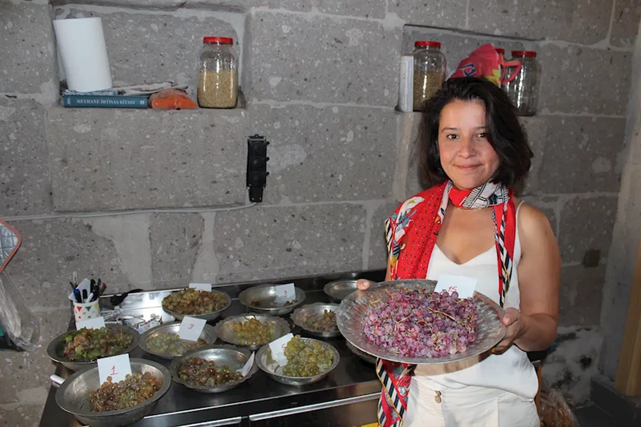 Çanakkale'de üzüm yetiştiriciliği yapan Duygu Kırış ise "Karasakız ve sıdalan üzümleri yetiştiriyorum. Kapadokya ise çok özel bir bölge. Burada 100 yaşında ya da daha büyük asmalarda doğal, uyum içinde, ilaçlama olmadan kadim bağcılık sistemi ile çok farklı şekilde işlenen üzümler var. Derneğin amacı da bu üzümlere korumak ve yeni nesillere aktarmaktır. Bugün burada 32 çeşit üzümü inceliyoruz. Bunlar, Aksaray, Nevşehir, Gaziantep, Çanakkale, Giresun ve Elazığ bölgelerinden gelen üzümler" diye konuştu. (DHA)