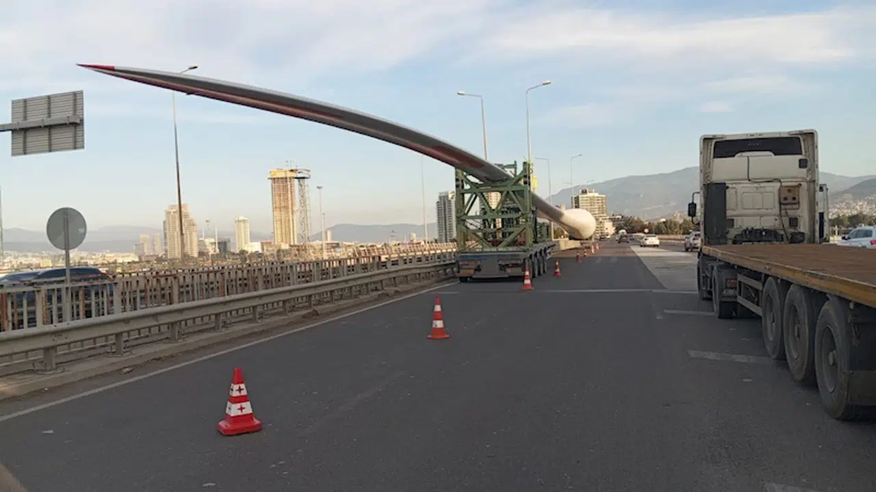 Nuray UZATMAZ/KAYSERİ, (DHA)- KAYSERİ Büyükşehir Belediyesi tarafından Türkiye’nin toplu ulaşım sektöründeki ilk rüzgar enerji santrali (RES) projesinde kullanılacak olan türbinlerin parçaları, İzmir Alsancak Limanı’ndan Kayseri’ye doğru yola çıktı.