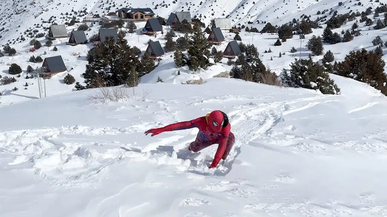 Türkiye'yi gezen 'Örümcek Adam' Ergan Kayak Merkezi'nde