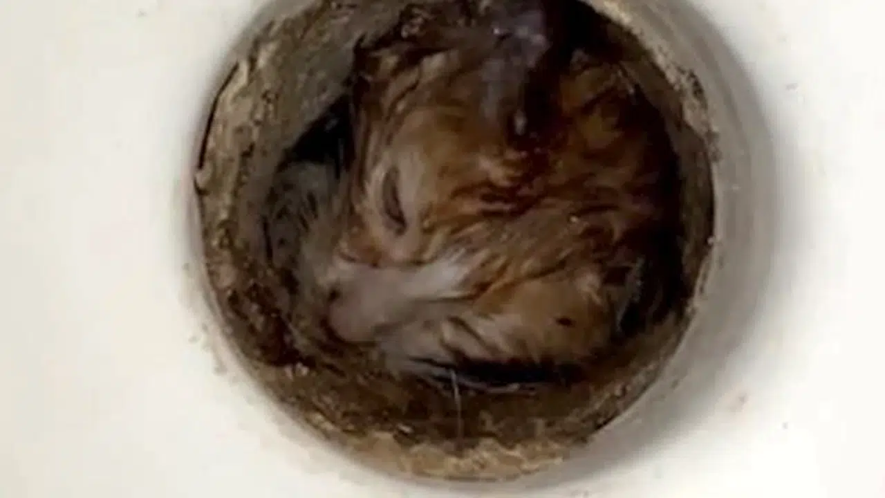 Tuvalet giderine sıkışan yavru kedi kurtarıldı