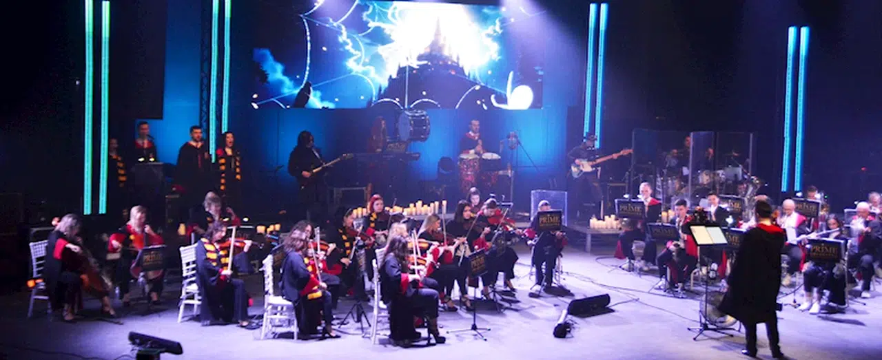 Kepez ilçesindeki Aktüel Açıkhava Sahnesi'nde gerçekleşen konserde, Ukrayna'da 'Müzik Şehri' olarak anılan Harkiv'de 2014 yılında kurulan ve teknik kadrosuyla birlikte 90 müzisyenden oluşan 'Prima Orchestra'nın üyeleri sahne aldı. Şef Denis Doroshenko'nun yönettiği orkestra, eşsiz müzik performansıyla 'Hogwarts Sympho Show'u sunarken izleyiciyi büyülü bir dünyaya sürükledi. Orkestra yalnızca John Williams'ın ünlü melodilerini değil, aynı zamanda izleyiciyi 'Harry Potter' hikâyesinin en heyecan verici anlarına taşıdı. Antalyalılar, yerleşik yabancı çocuk, genç ve yetişkinler, konseri ilgiyle izledi. Sahne etrafında yanan 500 mum da renkli bir atmosfer oluşturdu.