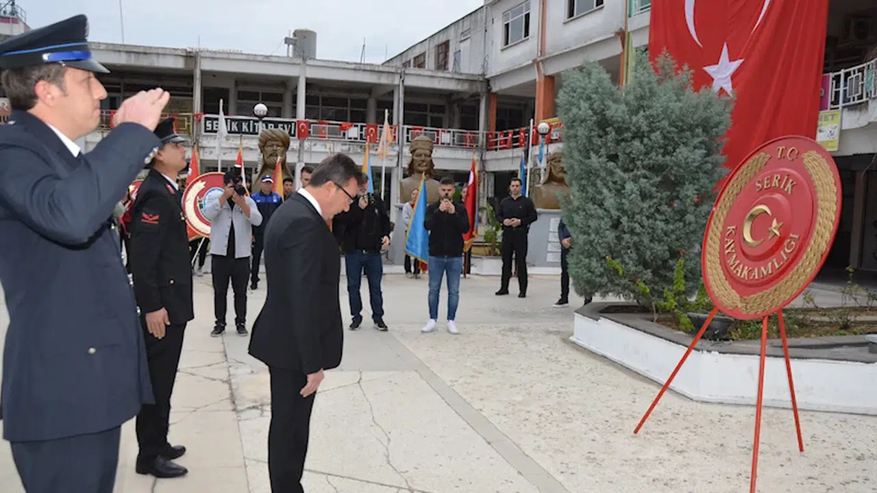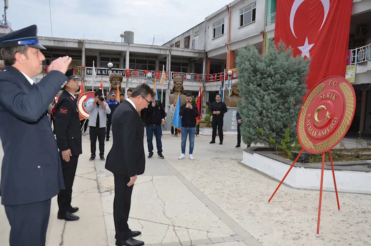 Cumhuriyet alanında düzenlenen anma törenine Serik Kaymakamı Cemal Şahin, Belediye Başkanı Kadir Kumbul, Serik Cumhuriyet Başsavcısı Muhammed Kaan Özel, kurum müdürleri, STK temsilcileri ve vatandaşlar katıldı. Tören saygı duruşu ve İstiklal Marşının okunmasıyla başladı. Tören, Kaymakam Cemal Şahin ve Belediye Başkanı Kadir Kumbul'un Atatürk anıtı önüne çelen sunumuyla devam etti.