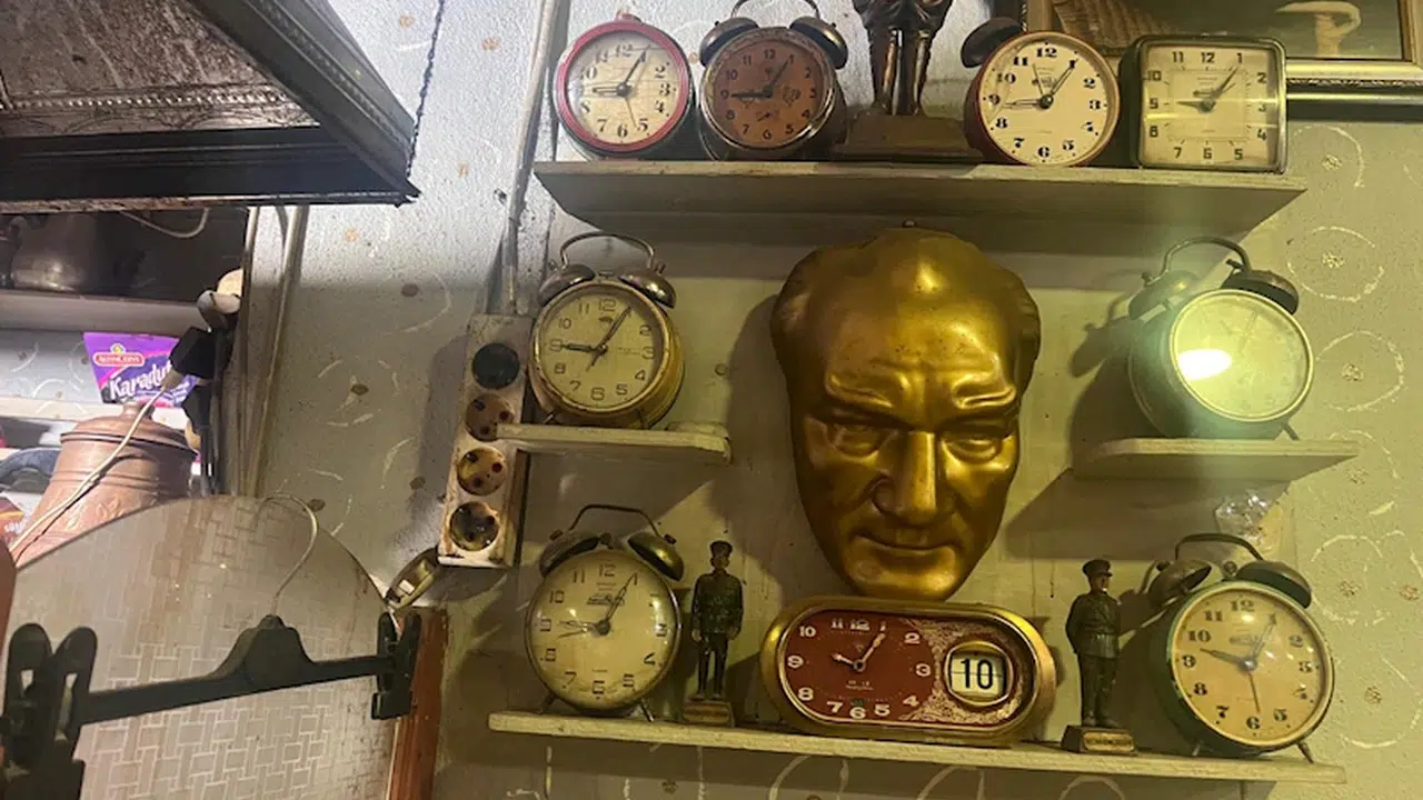 Denizhan TECİK-Memet Can YEŞİLBAŞ/BURSA, (DHA)- BURSA'da Atatürk, fotoğrafları, resimleri ve 09.05’te duran 11 saatin duvarlarında yer aldığı kahvehanede yaşatılmaya devam ediyor. 30 yıl önce babasından aldığı emanetlere gözü gibi bakan Rıfat Doğru (64), Ulu Önder’i ebediyete intikalinin 86’ncı yılında, ilk kez babası olmadan andığını söyleyerek, “Babam yaklaşık 1 sene önce vefat etti. İlk kez babam olmadan, Atatürk’ün ölümünü yas tutarak anacağız” dedi.