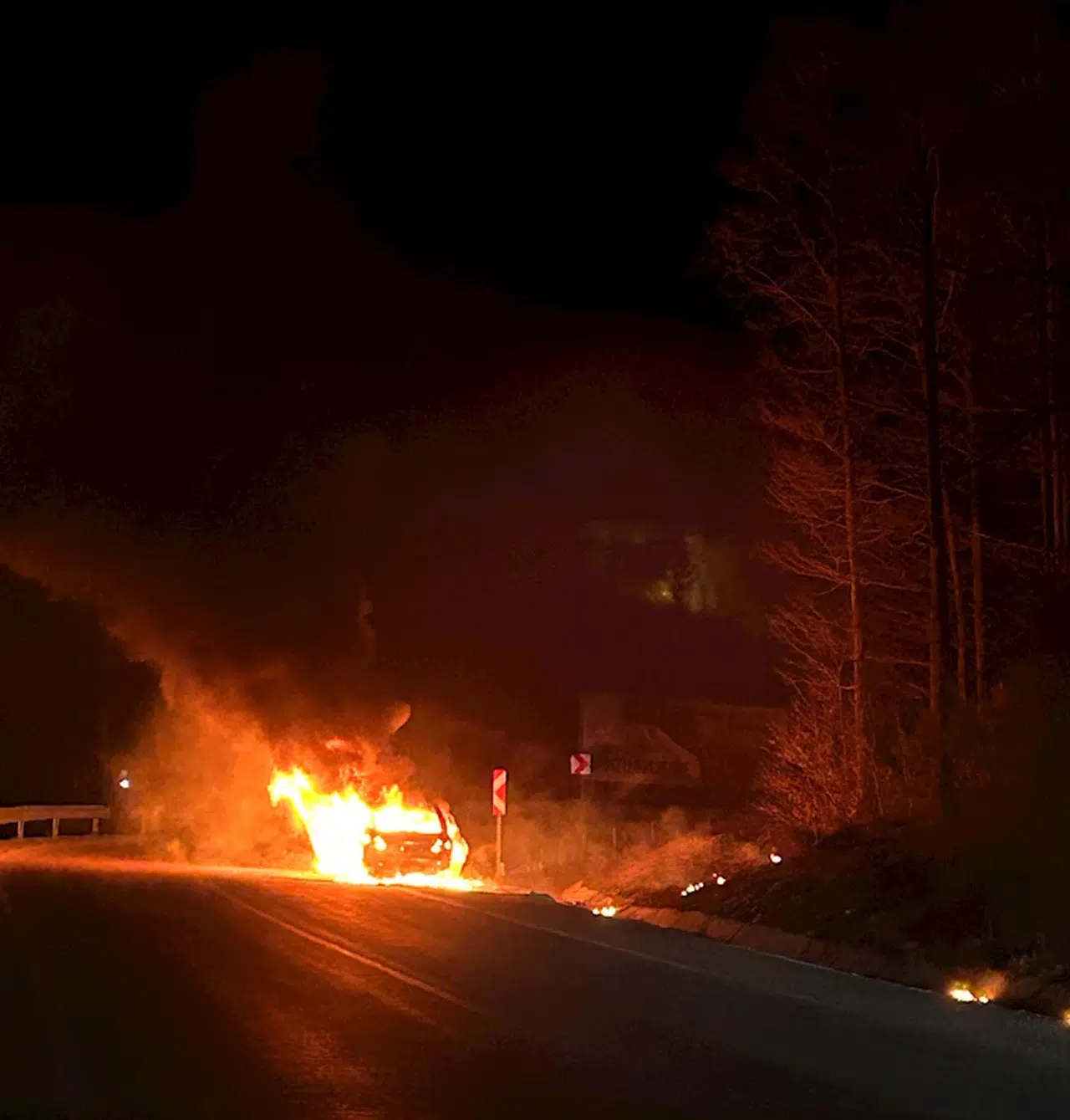 İhbarla bölgeye itfaiye ve jandarma ekipleri sevk edildi. Jandarma ekipleri yolda önlem alırken, yangın ise ormana yayılmadan itfaiyecilerin müdahalesiyle söndürüldü. Araç kullanılamaz hale geldi. Yangının çıkış nedeniyle ilgili inceleme başlatıldı. (DHA)