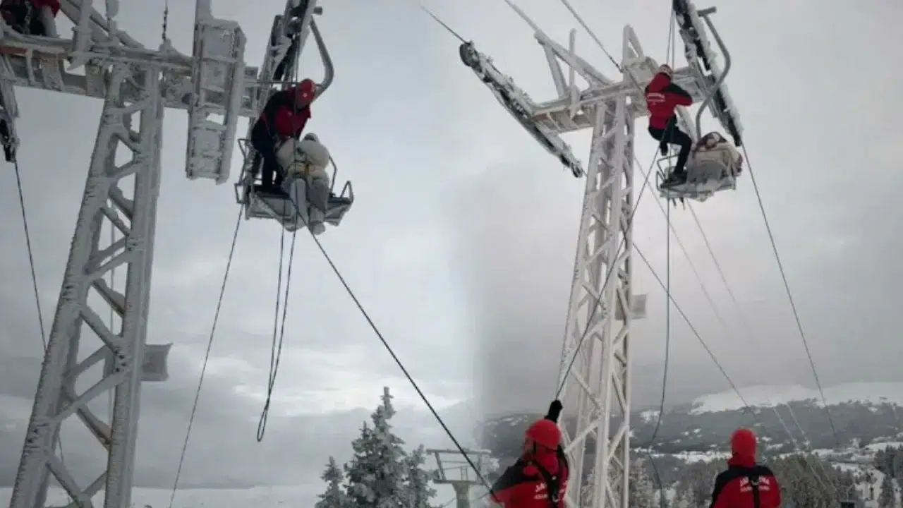 Uludağ’daki Oteller Bölgesi’nde bir telesiyejde meydana gelen arıza paniğe neden oldu. Yaklaşık 50 kişiyi taşıyan telesiyejde yolcular tellerde mahsur kalırken, kurtarma çalışmaları başlatıldı.