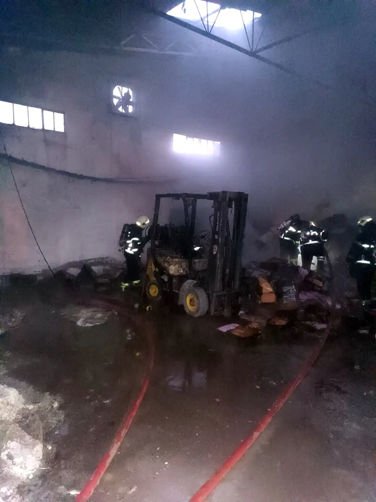 İlçenin Cevizdere Mahallesi'nde faaliyet gösteren kedi kumu paketleme tesisinde henüz bilinmeyen nedenle yangın çıktı.