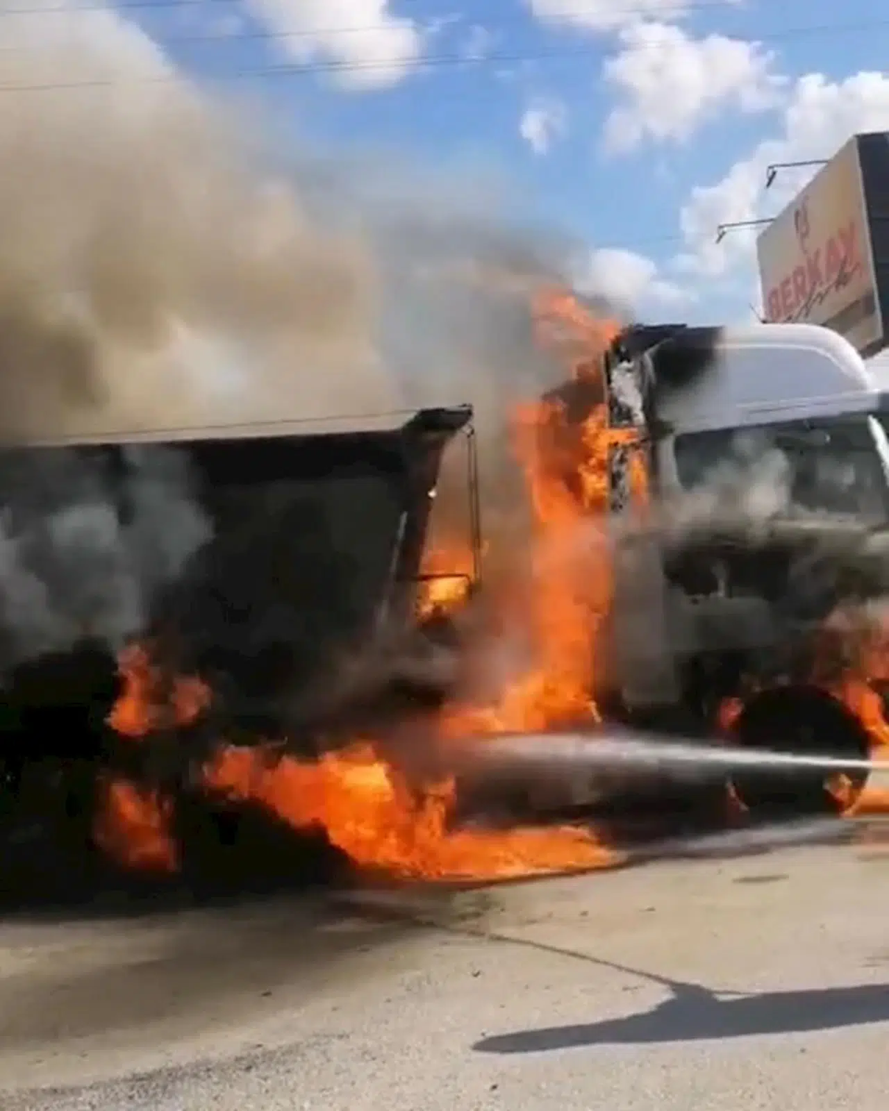 Yangın, saat 20.00 sıralarında Uşak merkeze bağlı İkisaray köyü yakınlarında meydana geldi. Bir iş yerinin önünde park halinde bulunan 64 FM 242 plakalı TIR’da henüz belirlenemeyen nedenle yangın çıktı. Hızla yayılan yangında TIR alev topuna dönüşürken, çevredeki vatandaşların ihbarı üzerinde bölgeye itfaiye ve jandarma ekipleri sevk edildi. İtfaiye ekiplerinin müdahalesiyle yangın söndürülürken, TIR kullanılamaz hale geldi. (DHA)
