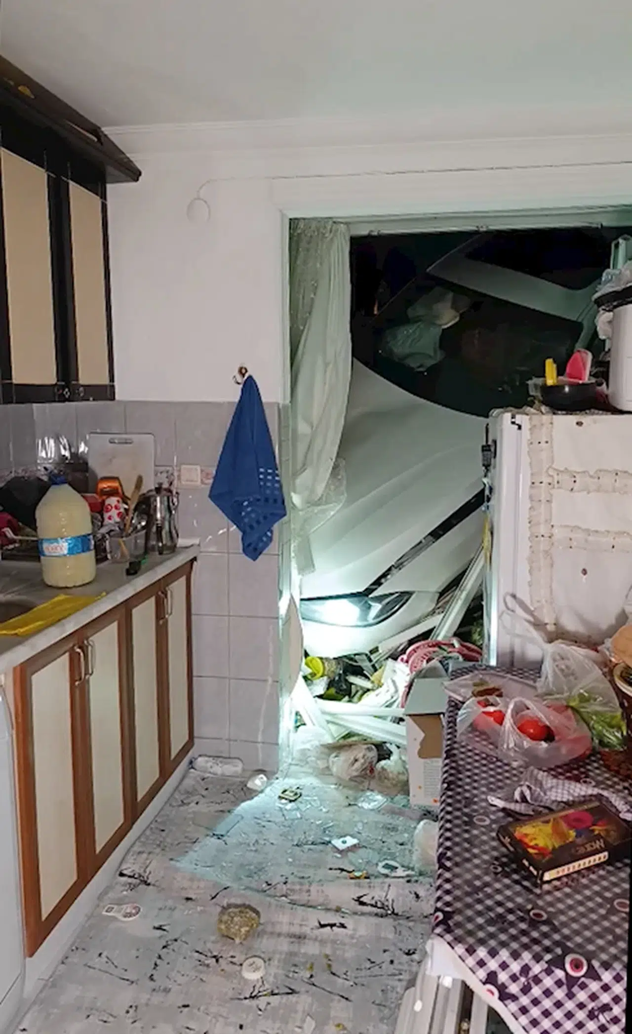 Sürücünün kontrolünü kaybettiği otomobil önce yakındaki çöp konteynerine ardından cami bahçesine daldı. Çitleri parçalayıp geçen otomobil, çarptığı park halindeki otomobili de sürükleyip, yaklaşık 3 metre yükseklikten apartman bahçesine uçtu. Otomobil, çarptığı zemin kattaki dairenin mutfak duvarını da yıktı. Trafik, itfaiye ve sağlık ekiplerinin yardımıyla araçtan çıkarılan sürücü, polis ekibi eşliğinde ambulansla Manavgat Devlet Hastanesi'ne götürüldü.