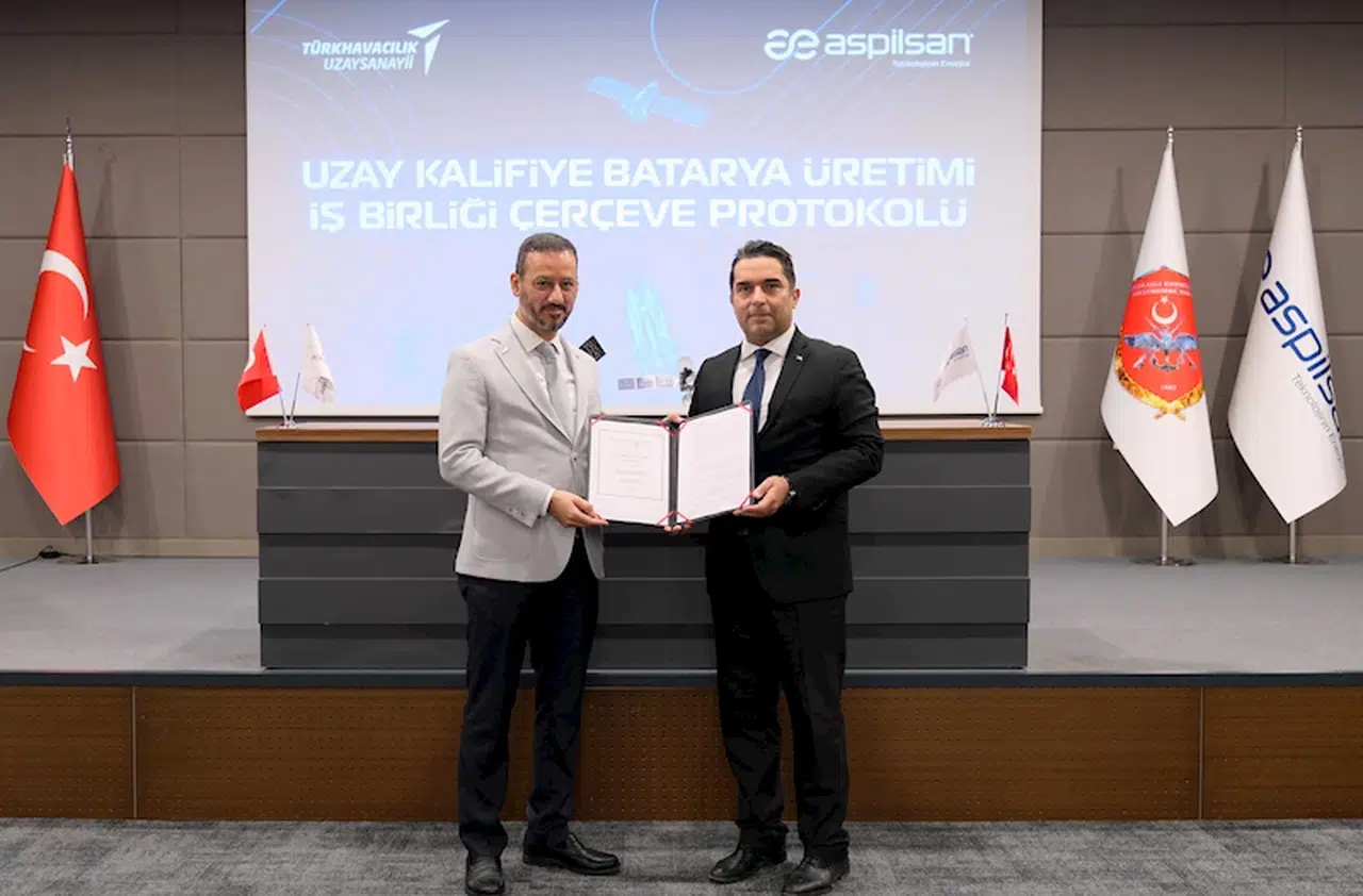 ANKARA, (DHA)- TÜRK Havacılık ve Uzay Sanayii (TUSAŞ) ve ASPİLSAN Enerji arasında uzay sistemleri için batarya geliştirilmesi ve üretilmesi alanında iş birliğini içeren 'Uzay Kalifiye Batarya Üretimi İş Birliği Çerçeve Protokolü' imzalandı. İki şirket, teknoloji transferi ve ortak Ar-Ge çalışmaları ile mevcut bilgi birikimlerini birleştirerek, uzay sistemlerinde kullanılacak ileri düzey bataryaların yerli üretimini gerçekleştirecek.