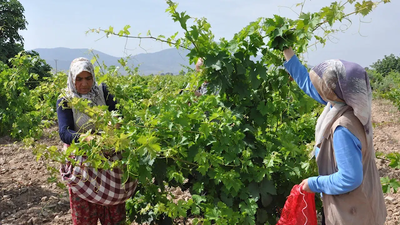 Kadir ÇELİK/İSLAHİYE (Gaziantep), (DHA)- GAZİANTEP'in İslahiye İlçesinde, yetiştirilen üzümlerin yaprak hasadı başladı. Yaprağın kilosunun 80 liraya ulaşması üreticinin yüzünü güldürüyor.