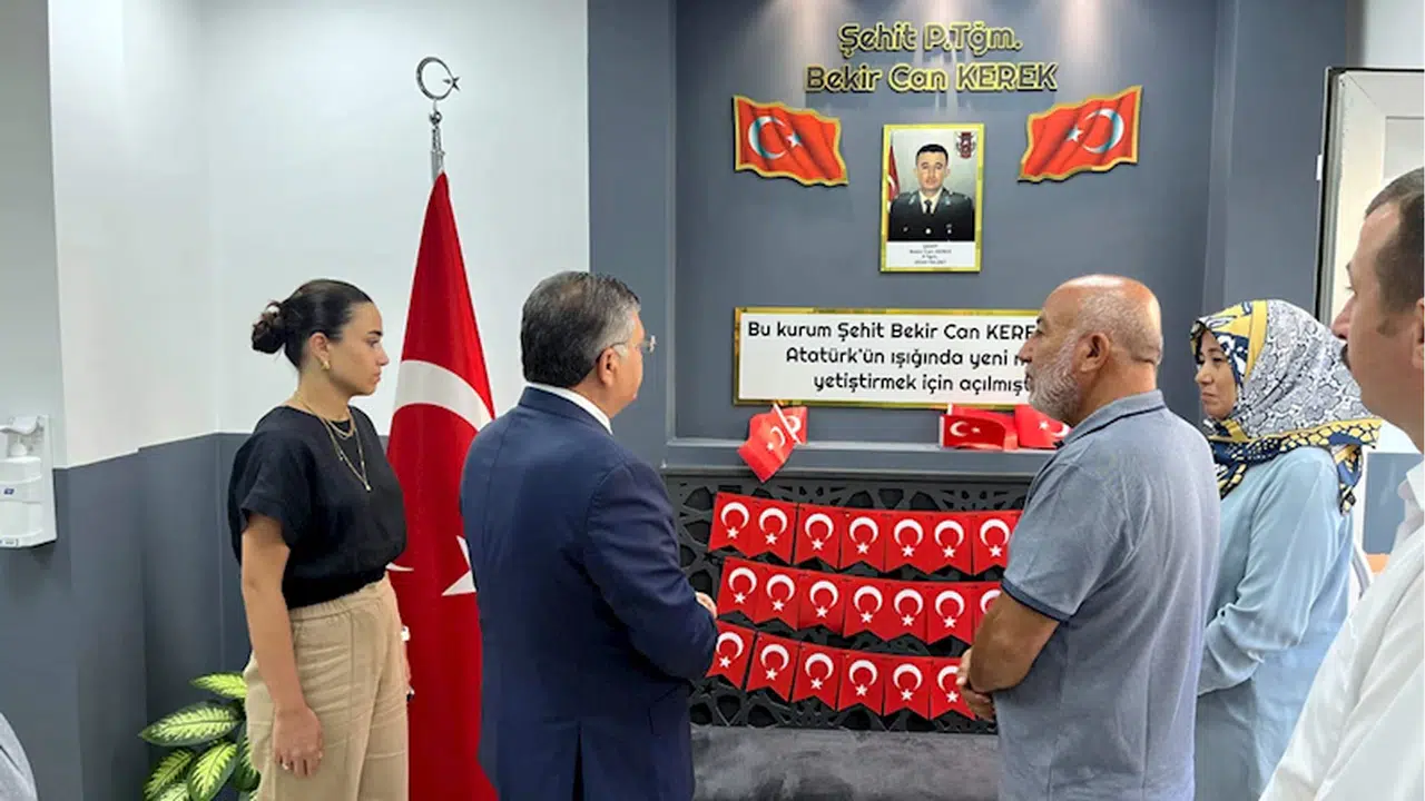 SİNOP (AA) - Sinop Valisi Mustafa Özarslan ve beraberindekiler, özel bir eğitim kurumunu ziyaret ederek Şehit Piyade Teğmen Bekir Can Kerek adına düzenlenen anı köşesini inceledi.