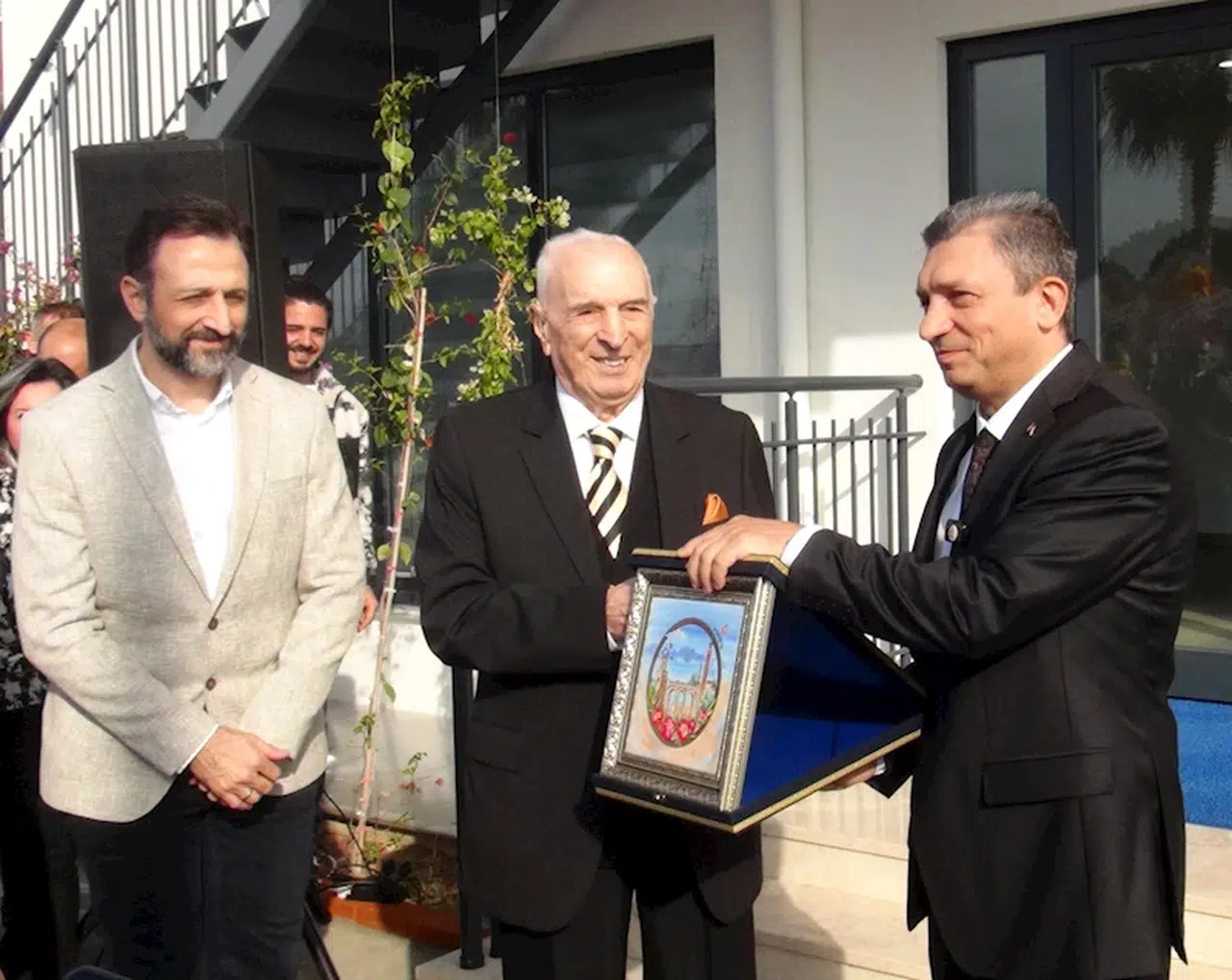 Vali Şahin, hayırsever Fuat Turan'a plaket hediye etti. Açılış kurdelesi kesildikten sonra törene katılanlar aile sağlığı merkezini gezdi. (DHA)