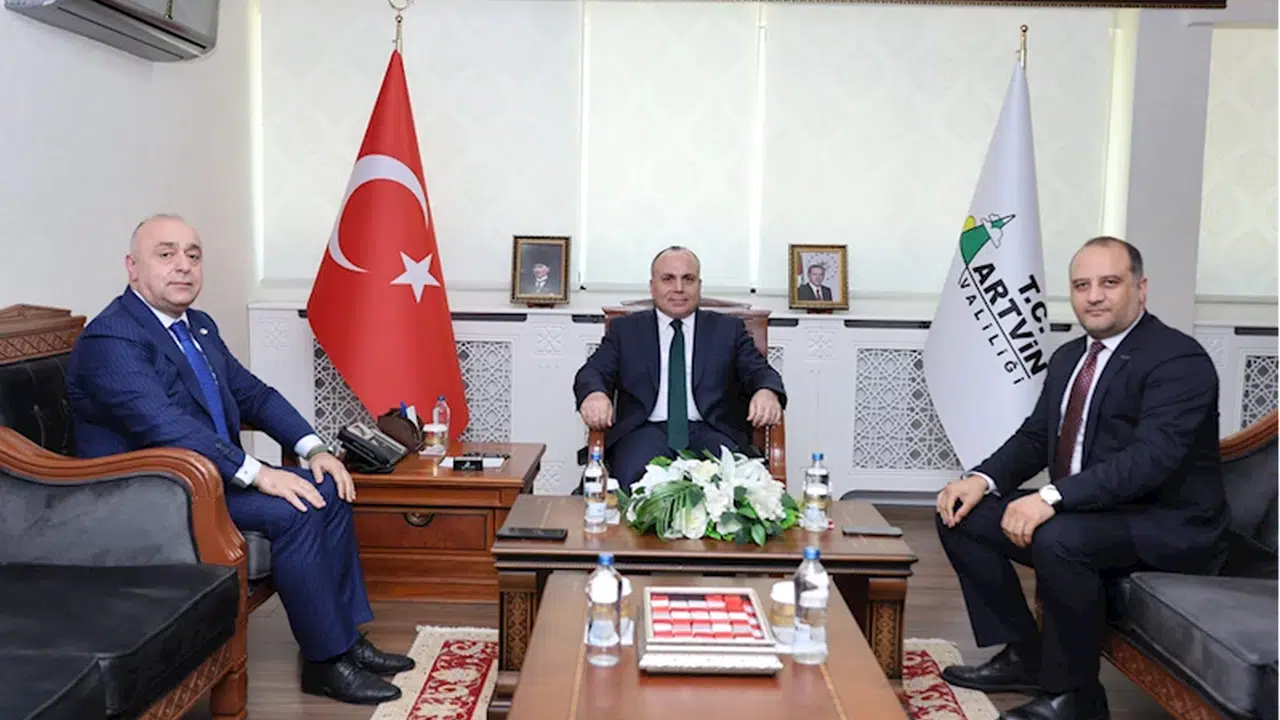 ARTVİN (AA) - Artvin Valisi Cengiz Ünsal, Dış Ekonomik İlişkiler Kurulu (DEİK) Türkiye-Gürcistan İş Konseyi Başkanı ve Gürcistan Uluslararası Yatırımcılar Derneği Başkanı Osman Çalışkan ile iş insanı Çağatay Ülker'i makamında kabul etti.