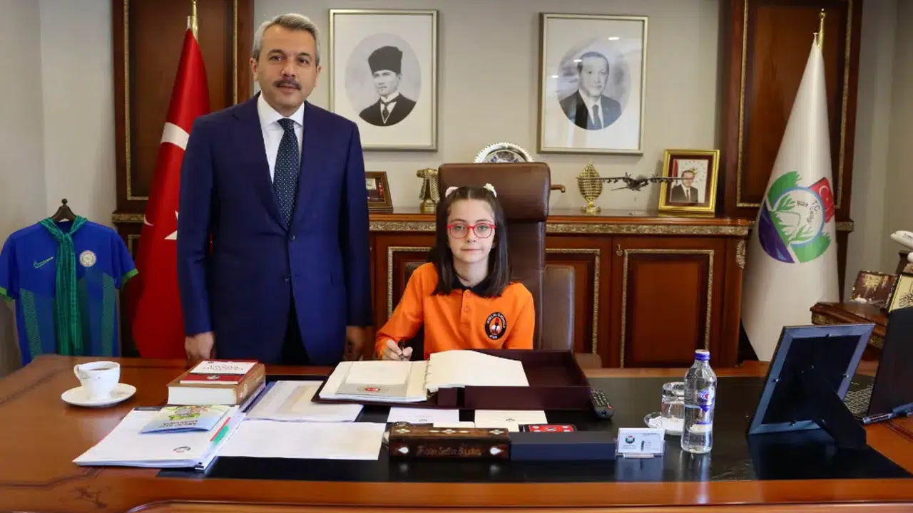 Rize Valisi İhsan Selim Baydaş, 23 Nisan Ulusal Egemenlik ve Çocuk Bayramı dolayısıyla makam koltuğunu temsili olarak İstiklal İlkokulu 4. Sınıf öğrencisi Zeynep Varlı’ya teslim etti.