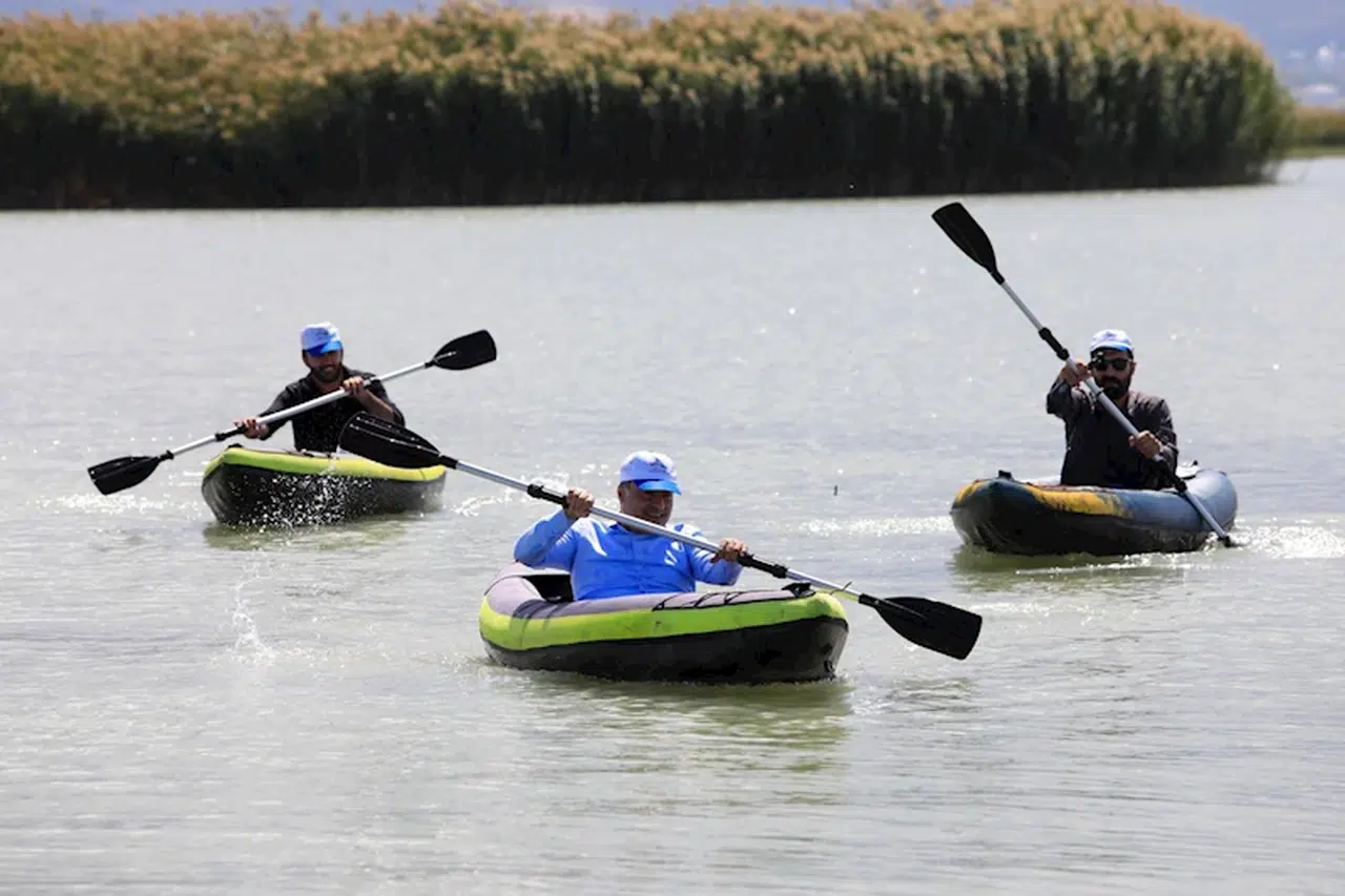 Behçet DALMAZ/ VAN, (DHA)- VAN Büyükşehir Belediye Başkanı Abdullah Zeydan, beraberindeki belediye meclis üyeleri ve çevrecilerle birlikte birçok kuş türüne ev sahipliği yapan doğa harikası Dilkaya Deltası’nda kano ile kürek çekti, sazlıkta çevre temizliği yaptı.