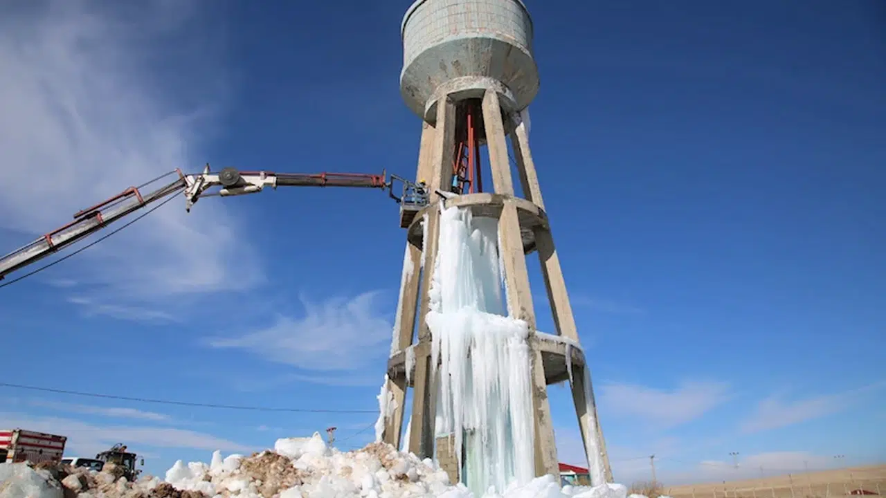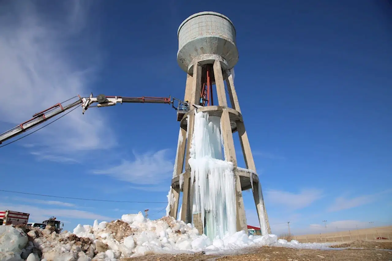 Gevaş ilçesine bağlı Kızıltaş Mahallesi'nde bulunan su deposunun boruları, dondurucu soğuklarda buz tutarak patladı. Su deposundan akan sular eksi 10 derecede dondu, sarkıtlar oluştu. Mahalleye su verilemeyince bölgeye Van Su ve Kanalizasyon İdaresi (VASKİ) ekipleri sevk edildi. Ekiplerin zorlu çalışması sonucu, 15 metre yüksekliğindeki deponun patlayan boruları vinç ile değiştirilerek mahalleye su verildi. (DHA)