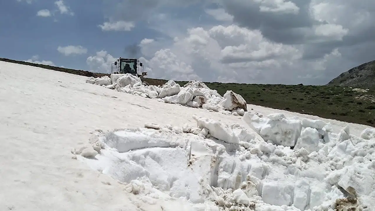 Ülke genelinde kavurucu sıcaklar etkili olurken, Van’ın yüksek kesimlerinde karla mücadele çalışması yürütüyor. Van Büyükşehir Belediyesi Yol Yapım Bakım ve Onarım Dairesi Başkanlığına bağlı Kırkgeçit Şantiye Şefliği ekipleri, kent merkezine yaklaşık 135 kilometre uzaklıktaki Gürpınar ilçesindeki 3 bin rakımlı Sıcaklı Mahallesi Tüzek mezrasında yayla yolunda karla mücadele çalışması yaptı. 2 iş makinesi ve 4 personel ile Hakkari sınırına yakın bölgede yürütülen çalışmalar tamamlanırken, yer yer 3 metreyi bulan kar kütlelerini temizleyen ekipler, kapalı olan son yayla yolunu ulaşıma açtı. (DHA)