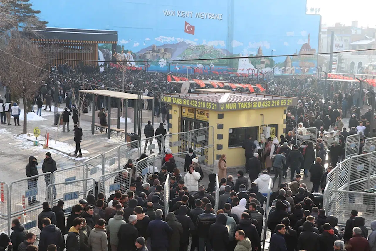 Van, Diyarbakır ve Mersin'de de açıklama öncesi DEM Parti il örgütleri tarafından partililerin meydanlara gelmesi çağrısı yapıldı. Yapılan çağrı üzerine Van'da binlerce kişi kent meydanına geldi. DEM Parti heyetinin İmralı görüşmesi açıklaması LED ekranda kalabalığa canlı olarak izletilecekti, ancak İçişleri Bakanlığı'ndan izin çıkmayınca, ses yayın sistemi ile dinletildi. Kalabalık, Kalabalık, örgüt elebaşı Abdullah Öcalan'ın mesajı okunurken, sesli dinledi. (DHA)