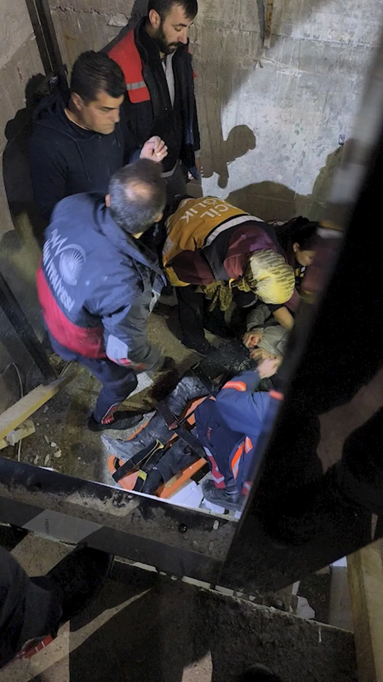 Behçet DALMAZ/ VAN, (DHA)- VAN'ın İpekyolu ilçesinde çalıştığı inşaat halindeki 6 katlı binanın 4'üncü katında dengesini kaybedip asansör boşluğuna düşen Erhan Karabulut yaralandı. İtfaiye ekipleri tarafından asansör boşluğundan çıkartılan Karabulut, tedaviye alındı.