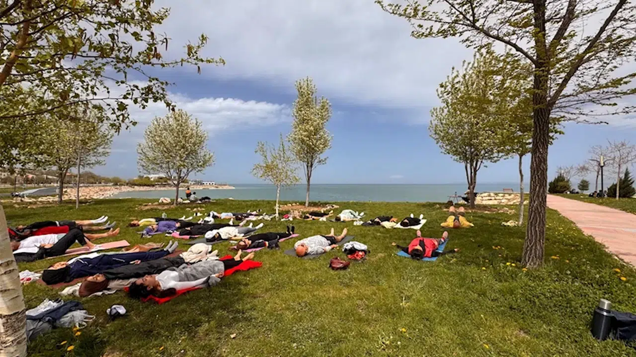 VAN,(DHA)-VAN'ın Edremit Belediyesi'nce Van Gölü sahilinde ücretsiz yoga etkinilği düzenlendi. Etkinlik kapsamında kadın ve erkekler, eğitmenler eşliğinde yoga yaptı.