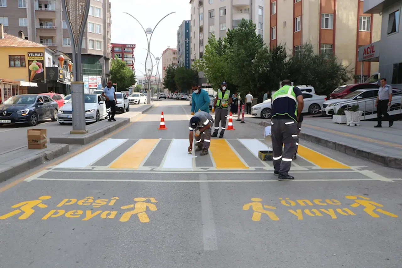 Behçet DALMAZ- Gülay KUYUCU/VAN, (DHA)- VAN Büyükşehir Belediyesi tarafından trafiğin yoğun olduğu bölgelerde, yaya geçitlerine Türkçenin yanı sıra Kürtçe 'Önce yaya', 'Yavaş' gibi uyarı yazıları yazılmaya başlandı. Büyükşehir Belediyesi Meclis Üyesi Öznur Evin, çalışmaların çok dilli olunca sürücü ve yayaların dikkatini çektiğini ve güzel dönüşler aldıklarını söyledi.
