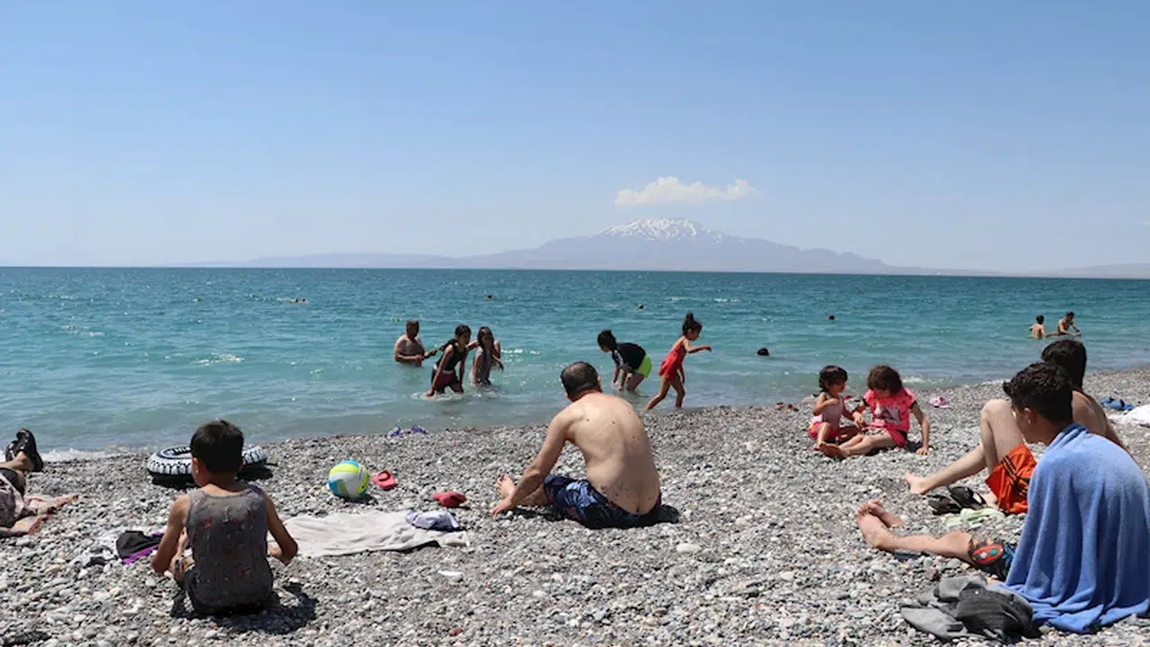 Türkiye'nin en büyük sodalı suyu olan Van Gölü’nün plajları, özellikle havaların ısınması ile birlikte kent sakinlerinin yanı sıra Türkiye'nin birçok ilinden gelen vatandaşlarla dolup taşıyor. Denizden yüksekliği bin 700 metre, yüz ölçümü 3 bin 713 kilometrekare, derinliği ise 500 metre olan Van Gölü, özellikle saklı koyları ve doğal güzellikleri ile turistlerin ilgisini çekiyor. 'Türkiye'nin göl kıyısındaki tek mavi bayraklı plajı' olan Tuşba ilçesindeki Mollakasım Halk Plajı, hava sıcaklığının 30 dereceyi bulmasıyla bayram tatilinde dolup taştı. Plajda, Akdeniz sahillerini aratmayan görüntüler oluşurken, yüzme bilmeyen vatandaşlar da sahil kenarında mangal yakıp piknik yaptı.