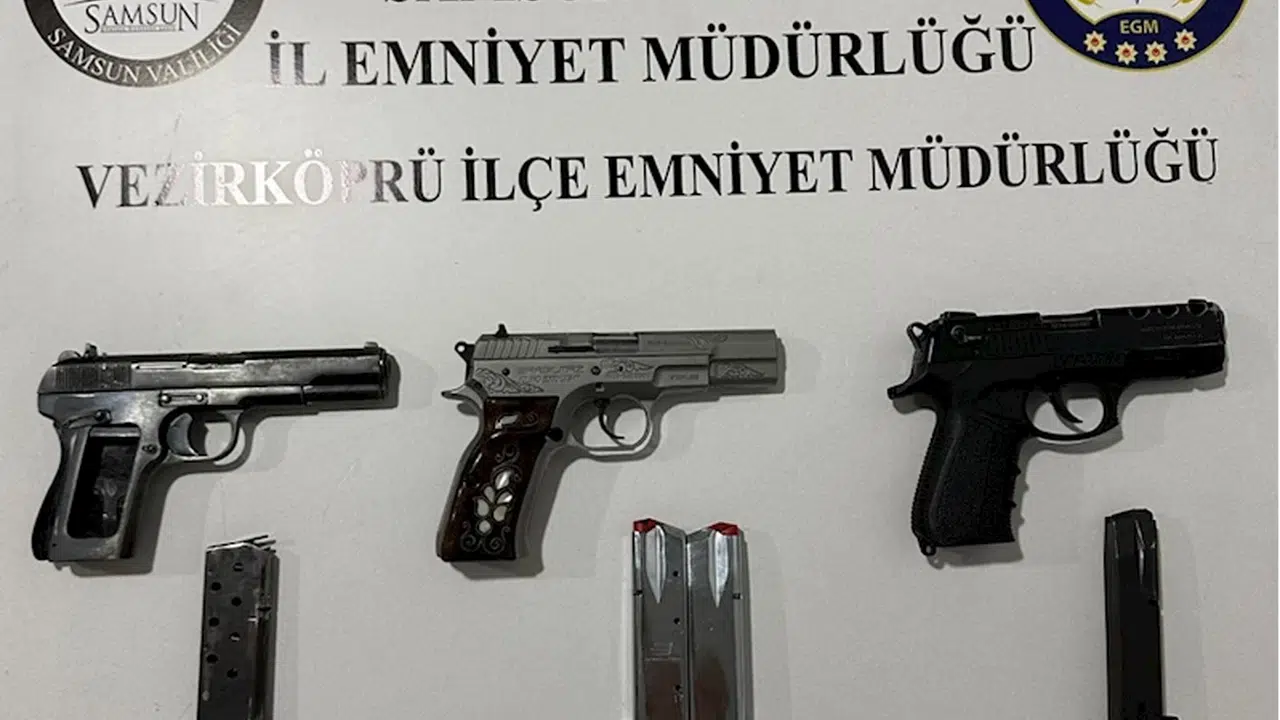 SAMSUN (AA) - Samsun'un Vezirköprü ilçesinde araçlarında ruhsatsız tabanca bulunan 2 şüpheli gözaltına alındı.