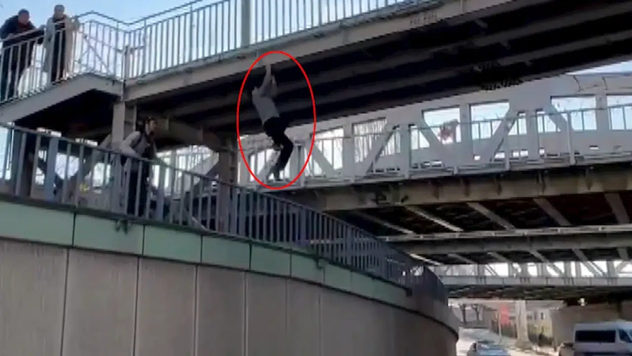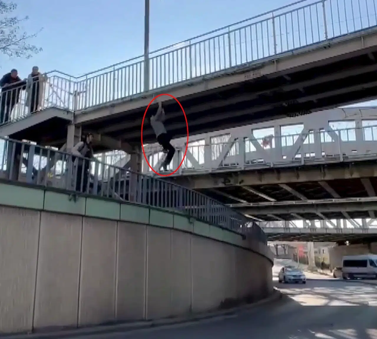 Semih ERSÖZLER/İSTANBUL, (DHA)- İSTANBUL'da yaşayan ve ekstrem spor videoları çeken İbrahim Koyuncu (25), üst geçidin altından karşıya geçerken 6-7 metreden yola düşüp, 2 bacağını kırdı.