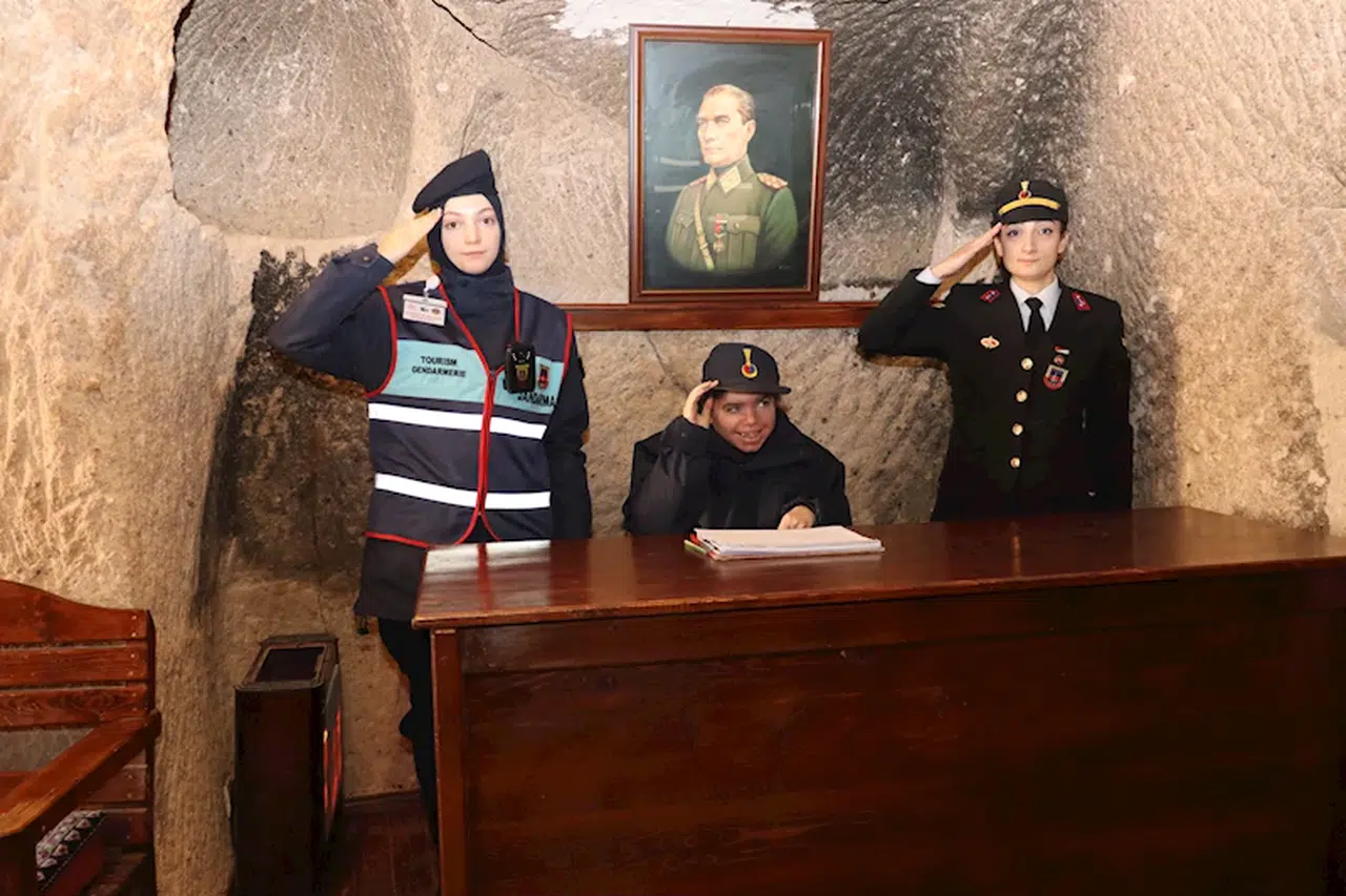 Merkez ilçeye bağlı Göreme beldesinde yaşayan Zeynep Uğur, 2 yaşında geçirdiği havale sonucunda west sendromlu oldu. İl Jandarma Komutanlığı Aile İçi Şiddetle Mücadele ve Çocuk Kısım Amirliği ekipleri, 3 Aralık Dünya Engelliler Günü kapsamındaki ziyaretleri sırasında Uğur'un astsubay olma hayalinin olduğunu öğrendi. Ekipler, Uğur'un hayalini gerçekleştirmek için harekete geçti. Jandarma üniforması giydirilen Zeynep Uğur, devriye aracı ile Göreme Jandarma Komutanlığı asayiş noktasına getirildi. Peribacası içinde bulunan asayiş noktasına gezen Uğur'un, doğum günü olması nedeniyle sürpriz kutlama da yapıldı. Pasta kesen Uğur, ekipler ile vakit geçirdi. (DHA)
