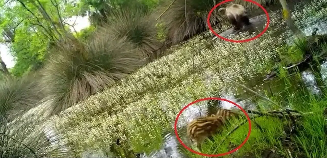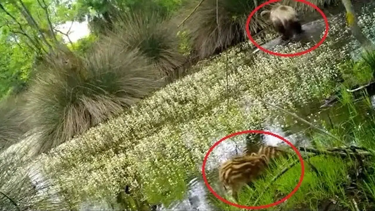 Doğa Koruma ve Milli Parklar 2'nci Bölge Müdürlüğü tarafından kaçak avlanmayla mücadele ve yemleme çalışmalarını takip etmek amacıyla yaban hayatın yoğun olduğu bölgelere fotokapanlar kuruldu. Fotokapanlara yakalanan hayvanlar, kurumun sosyal medya hesabında paylaşılıyor. Bu kez fotokapanın konukları yaban domuzu yavruları oldu. Karacabey Longoz Ormanları’nda görüntülenen yaban domuzu sürüsünde yavruların fotoğrafları Doğa Koruma ve Milli Parklar Müdürlüğü’nün sosyal medya hesabından, “15-20 bireyden oluşan sürüler halinde yaşayan pijamalı, moza ya da potak adı verilen ormanın minik sakinleri: Yaban Domuzu Yavruları!” ifadeleriyle paylaşıldı.