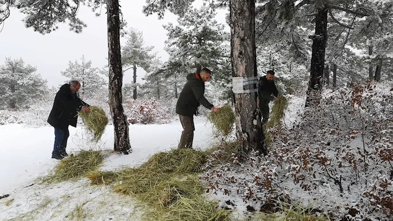 Mesut MADAN/BURDUR, (DHA)- DOĞA Koruma ve Milli Parklar (DKMP) Burdur 6'ncı Bölge Müdürlüğü ağır kış şartlarının yaşandığı bölgelerde yiyecek bulmakta zorlanan yaban hayvanlarına yem bıraktı.