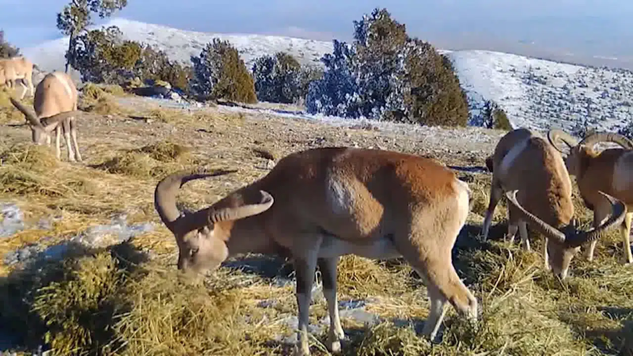 Yaban koyunları doğada beslenirken fotokapanla kaydedildi