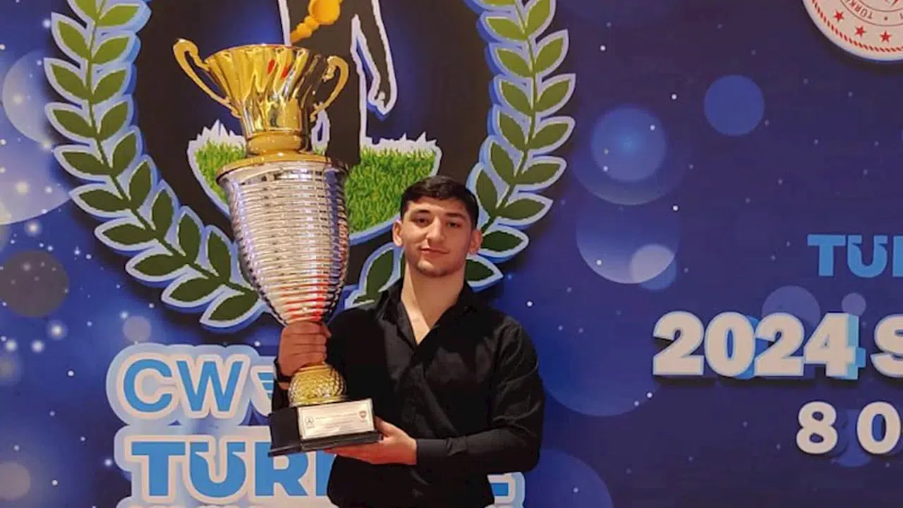 MANAVGAT, (DHA) - CW Enerji Türkiye Yağlı Güreş Ligi 2024 Sezonu'nu tozkoparan boyu birincisi olarak tamamlayan Manavgat Belediyesi Güreş Kulübü sporcusu Mehmet Başkan Bozkurt, düzenlenen törende kupasını aldı.