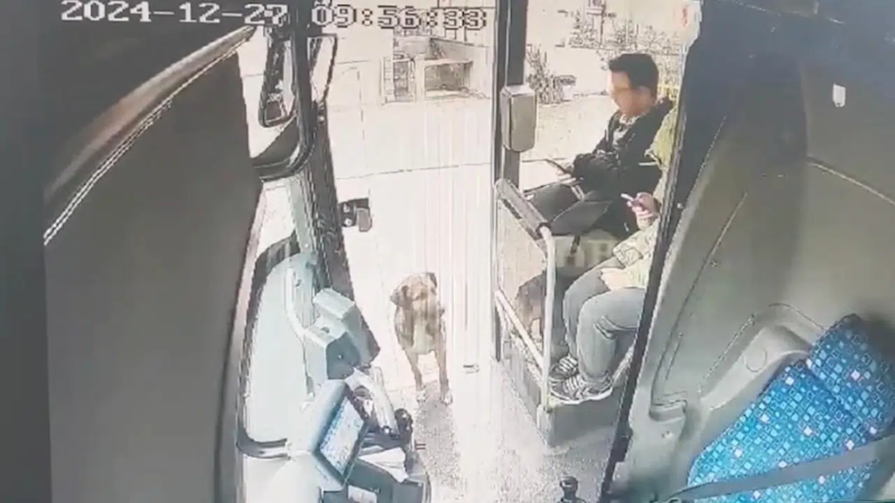 Safranbolu ilçesi Misak-ı Milli Meydanı'nda yağmurdan ıslanan köpek, 20 Aralık'ta otobüs durağına yanaşan 78 SB 145 plakalı halk otobüsüne bindi. Köpek, bir süre yolcular ile birlikte seyahat etti. Yolcuların şaşkınlıkla izlediği köpek, Karabük Üniversitesi durağında otobüsten indi. Yaşananlar, cep telefonu kamerasına ve otobüsün güvenlik kamerasına yansıdı. (DHA)