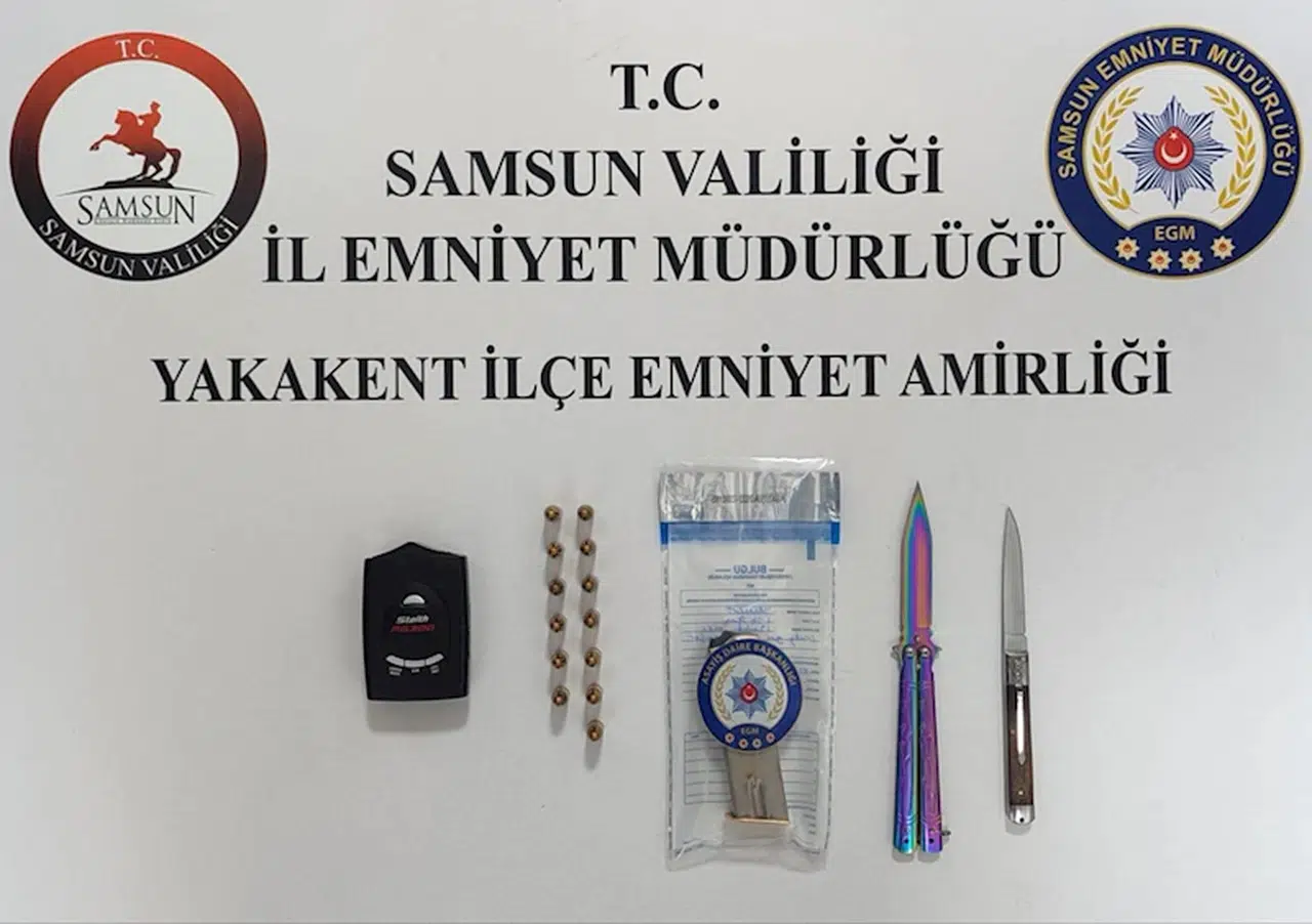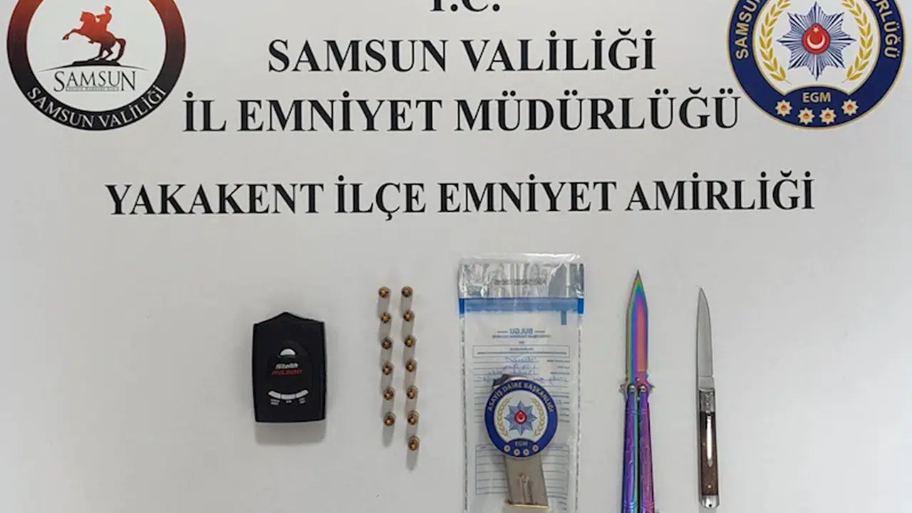 Yakakent'te bir araçta radar tespit cihazı ile mermi ve amaç dışı bıçak bulundu