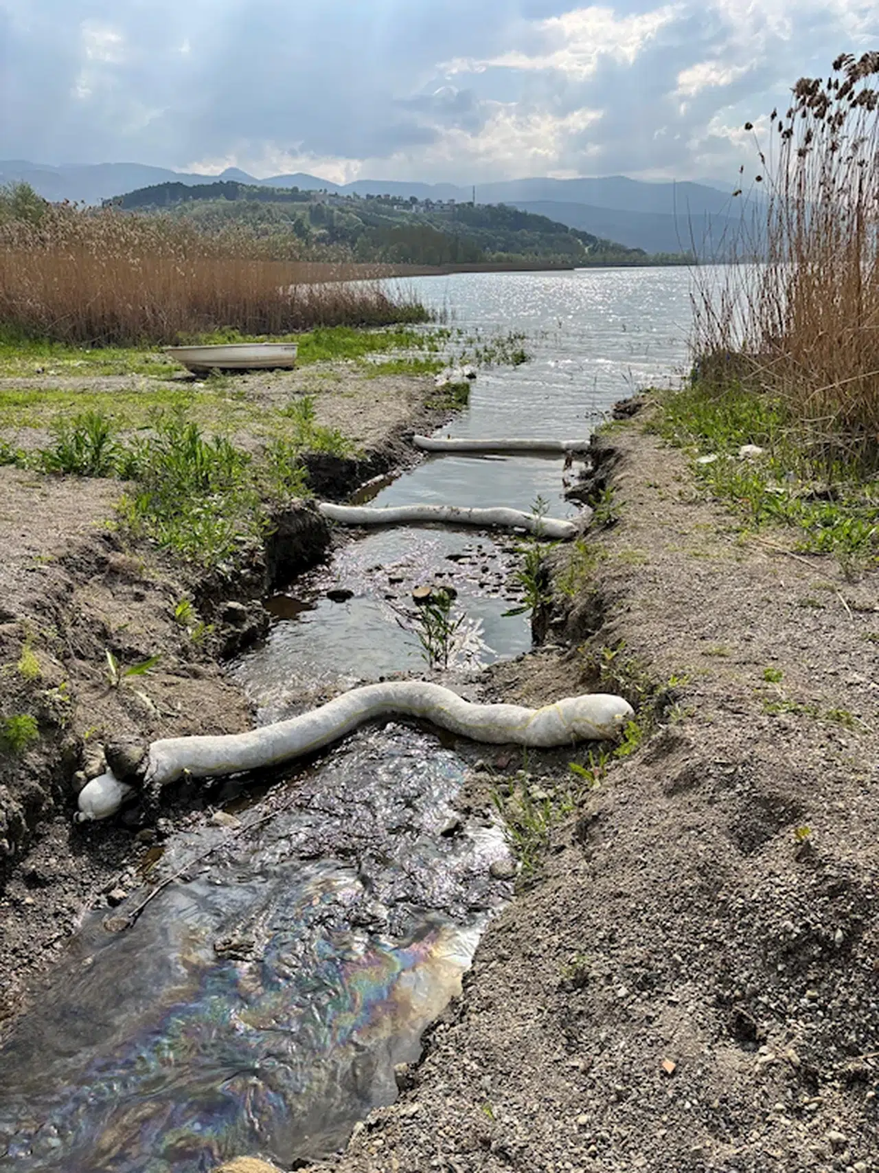 İsa ÇİÇEK/SAPANCA, (Sakarya), (DHA)- SAKARYA'nın Sapanca ilçesinde, Sakarya ve Kocaeli'nin içme suyu kaynağı olan Sapanca Gölü'nde amatör balıkçıların fark ettiği yakıt benzeri madde, ekipleri harekete geçirdi. Kaynağı belirlenemeyen yakıt göle karıştığı tespit edilince, kirli suyun Sapanca Gölü'ne karışmaması için ekipler tarafından dereye emici bariyer koyulup önlem alınıyor.
