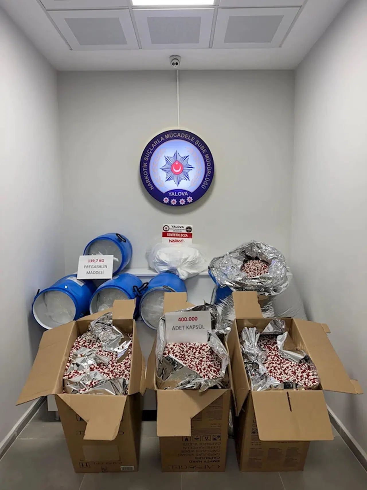 Zehra BAYKAL/ YALOVA, (DHA)- YALOVA’da narkotik köpeği ‘Zeytin’ ile 2 araçta yapılan aramada, sentetik ecza yapımında kullanılan 139 kilo 700 gram pregabalin maddesi ile dolum yapılmaya hazır 400 bin adet sentetik ecza kapsülü ele geçirildi. Gözaltına alınan 3 şüpheli tutuklandı.