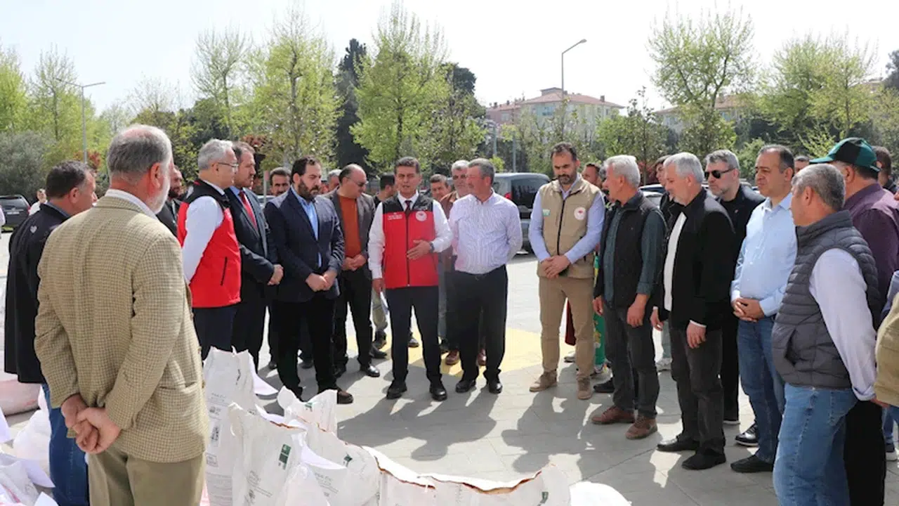 Konuşmaların ardından projeden yararlanan çiftçilere yağlık ayçiçeği tohumları teslim edildi. (DHA)