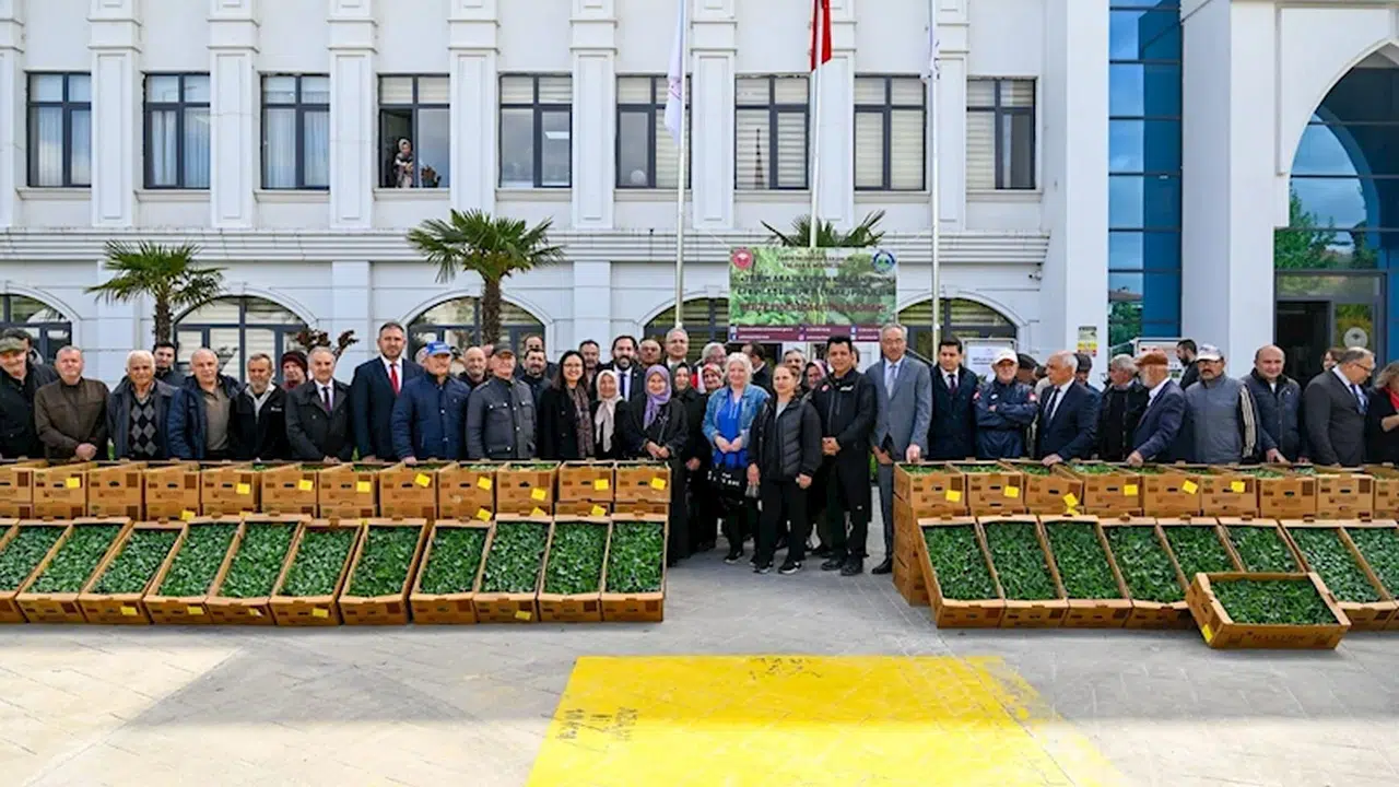 Konuşmaların ardından günün anısına fotoğraf çektiren protokol mensupları çiftçilere fideleri teslim ederek sohbet etti. (DHA)
