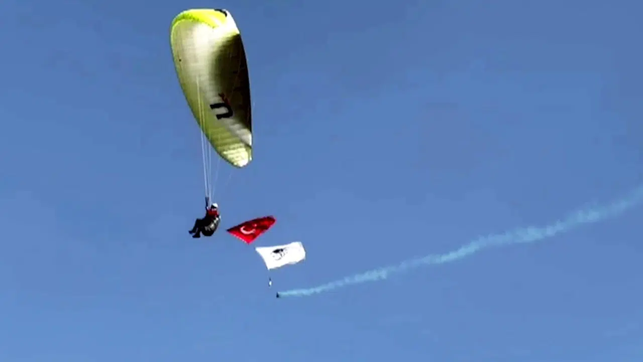 Yamaç paraşütçülerinden Türk bayraklı atlayış