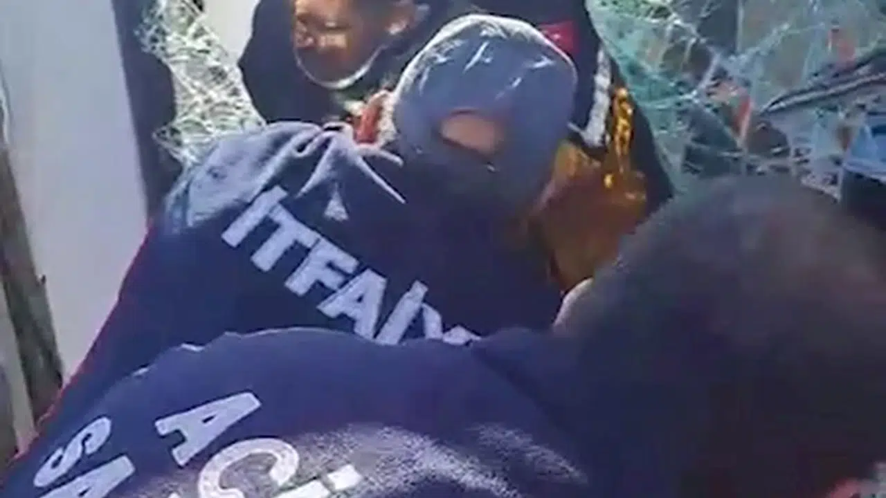 Yan yatan kamyonda yaralanan sürücüyü camdan çıkardılar
