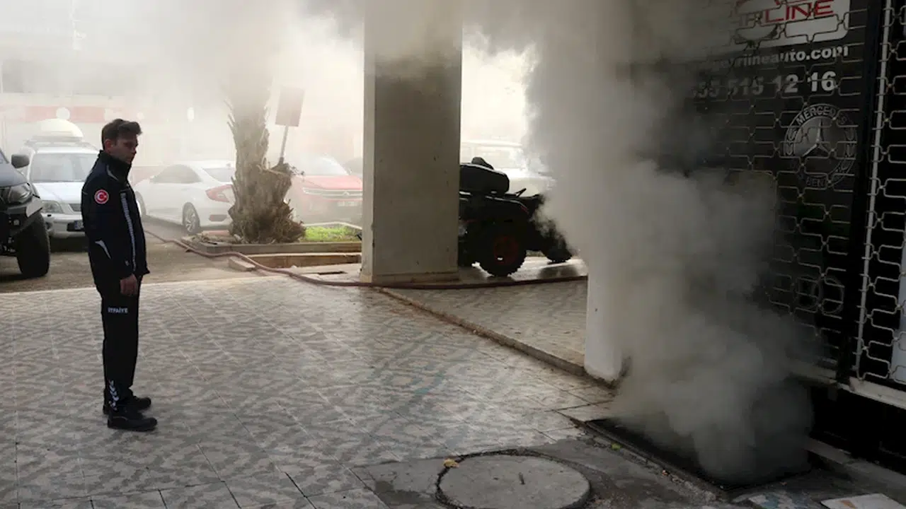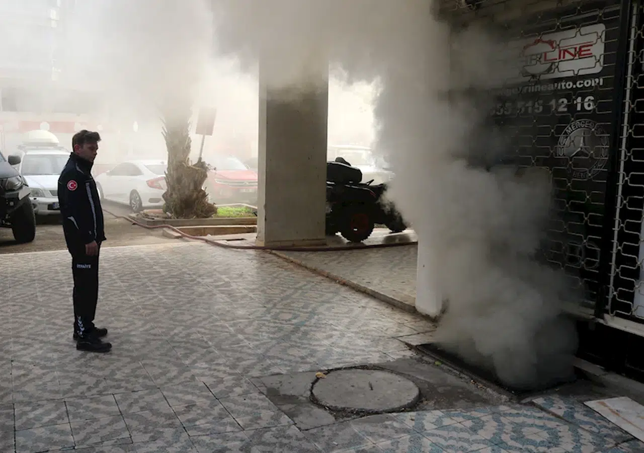 Muratpaşa ilçesi Kızılsaray Mahallesi 84’üncü Sokak’taki bir 6 katlı apartmanın bodrum katında saat 14.30 sıralarında yangın çıktı. İbrahim A., bodrum kata inip, uyuşturucu madde kullandıktan sonra burada bulunan malzemeleri yaktı. Komşuların ihbarı üzerine adrese itfaiye ve polis ekipleri sevk edildi. İbrahim A.'nın babası Mahmut A. oğlunun yanına giderek, bodrumdan çıkmasını sağladı. Yangın itfaiye ekipleri tarafından söndürdü, apartmana dolan dumanı tahliye etti. Polis ekipleri de İbrahim A.'yı ekip aracına alarak polis merkezine götürdü.