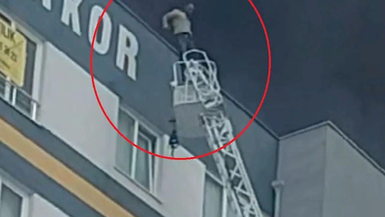 Yangından itfaiye merdiveninin sepetine atlayarak kurtuldu; o anlar kamerada