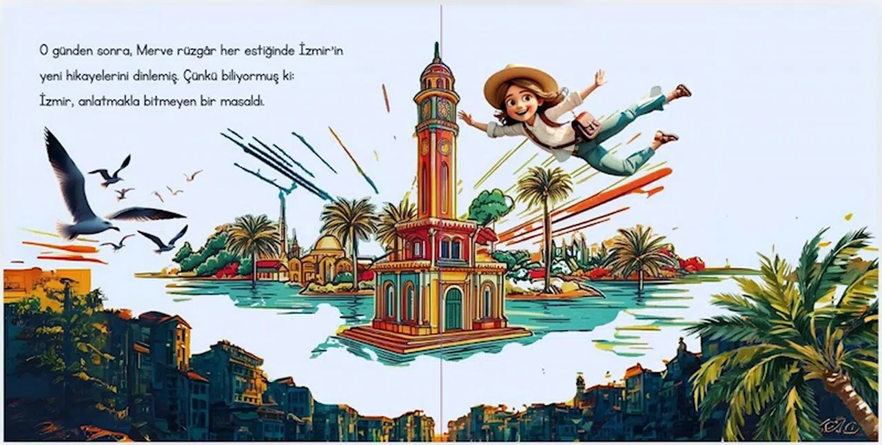 Rüya Alyamaç (11) projeyi duyunca çok heyecanlandığını ve özenerek hazırlandığını belirtti. Birinci sınıftan bu yana şiirler yazdığını ama bundan sonra hikayeler da yazacağını anlatan Alyamaç, "İzmir tarihi güzellikleriyle ünlü ve yabancı turistlerin ilgisini çekiyor. Yavru bir serçenin gözünden İzmir'i anlatmayı tercih ettim. Adı 'Serçe Cici'nin İzmir macerası'. Başka bir ülkede yaşayan bir serçe İzmir'e geliyor. Saat Kulesi'ni görüyor ve bir fırına gidiyor. Bir martıyla arkadaş oluyor. Martı onu Tarihi Asansör'e götürüyor. Çok iyi arkadaş oluyorlar. Serçe Cici İzmir'de yaşamaya karar veriyor. Arkadaşlıkları sonsuza kadar devam ediyor" ifadelerini kullandı.
