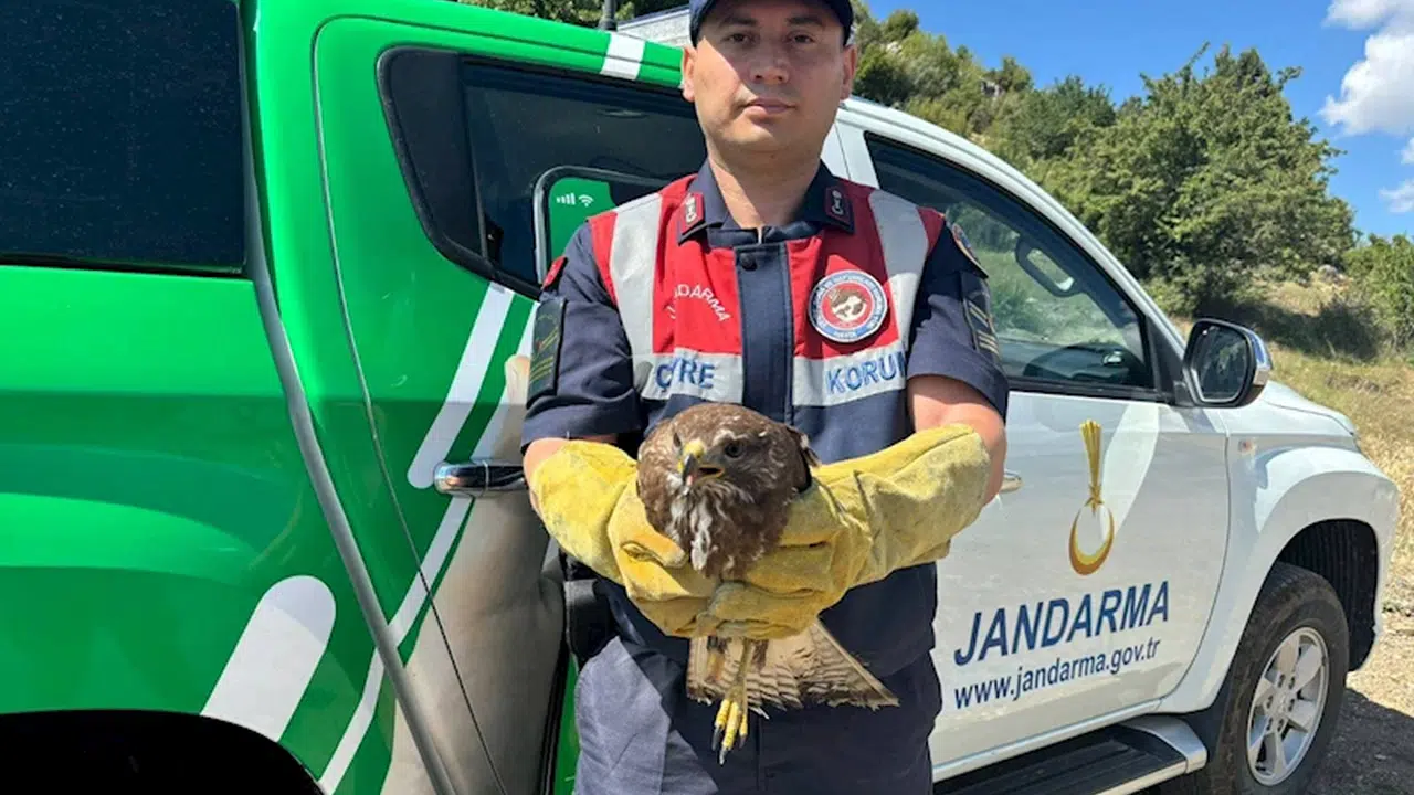 Mesut MADAN/BURDUR, (DHA)- BURDUR İl Jandarma Komutanlığı ekiplerinin ormanda yaralı halde bulduğu kızıl şahin tedaviye alındı.